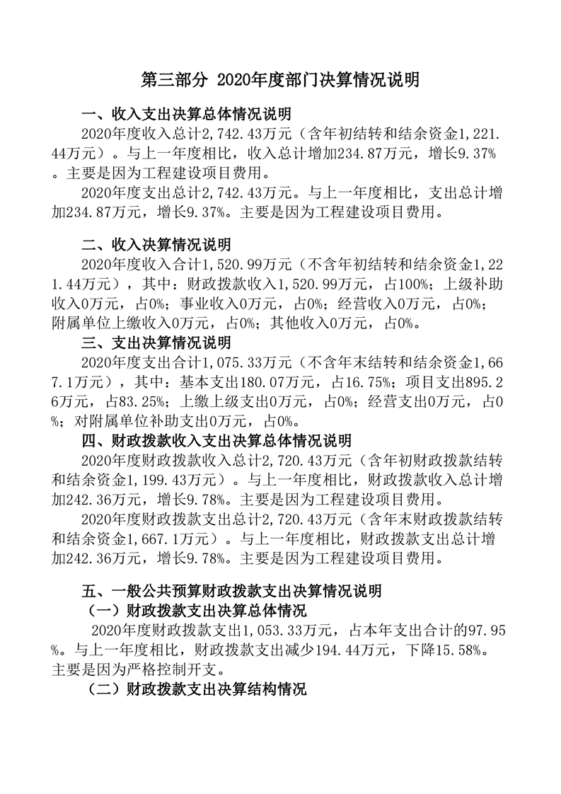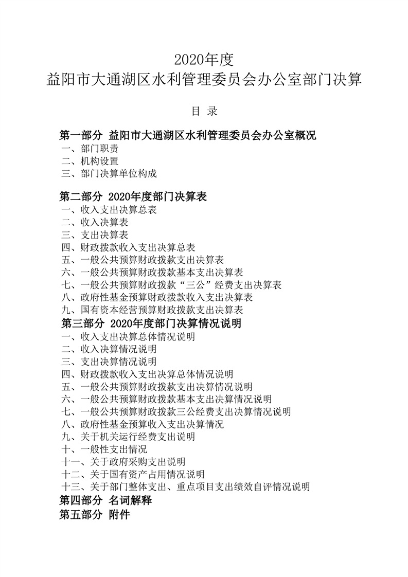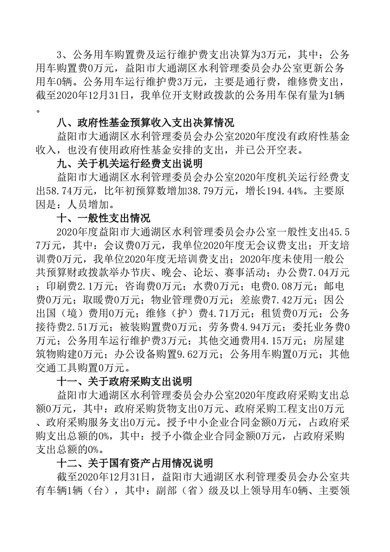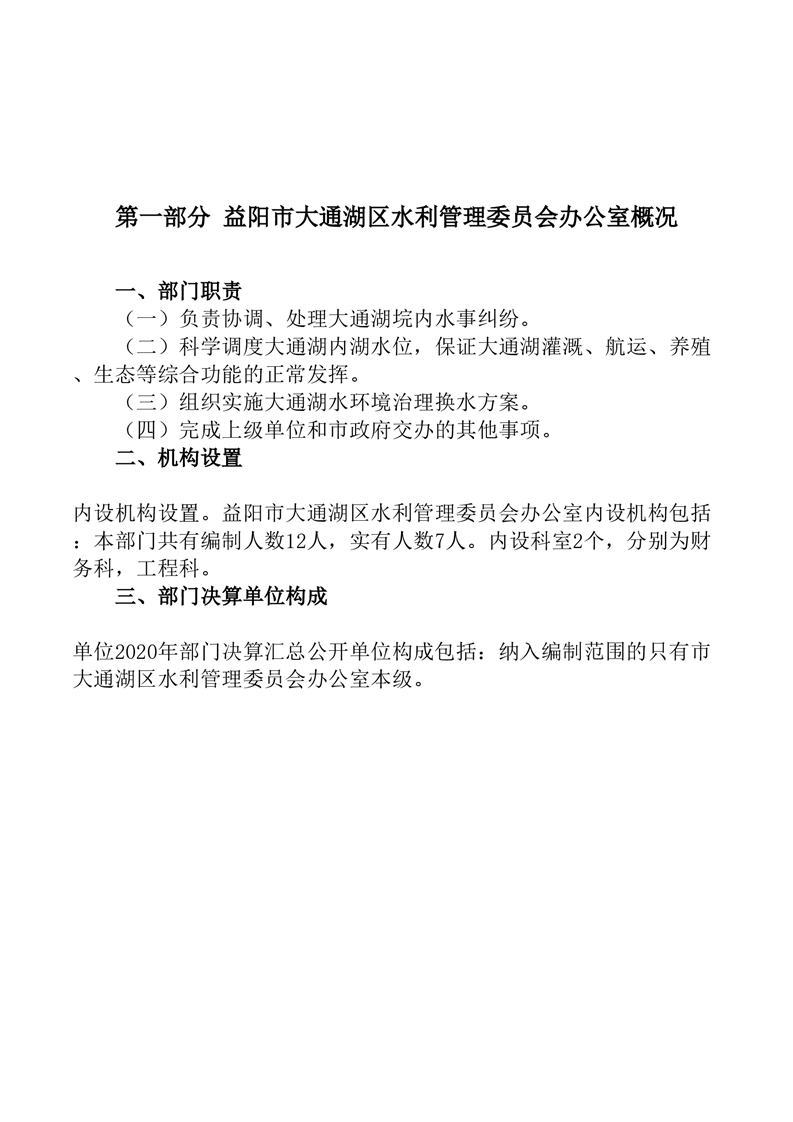 益阳市大通湖区水利管理委员会办公室2020年度部门决算公开说明