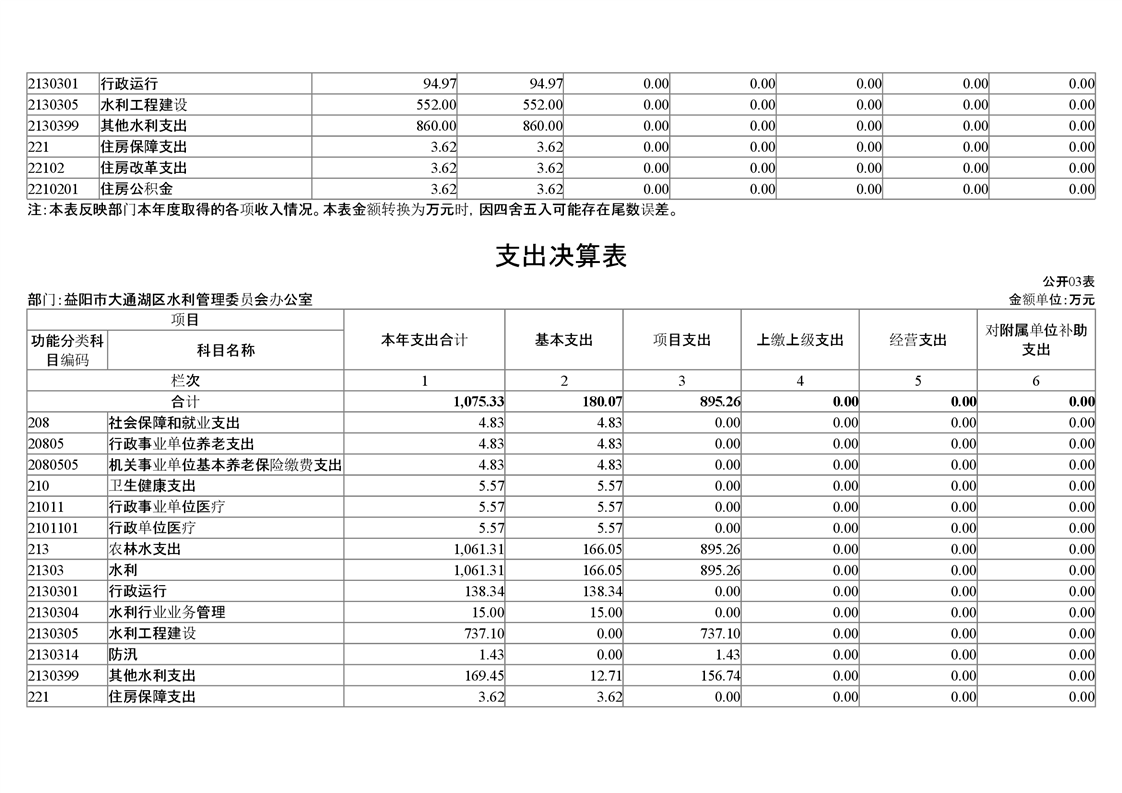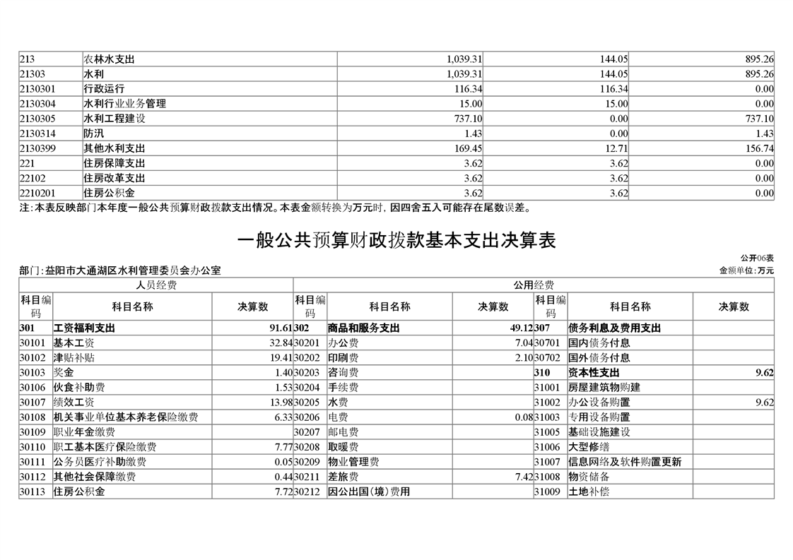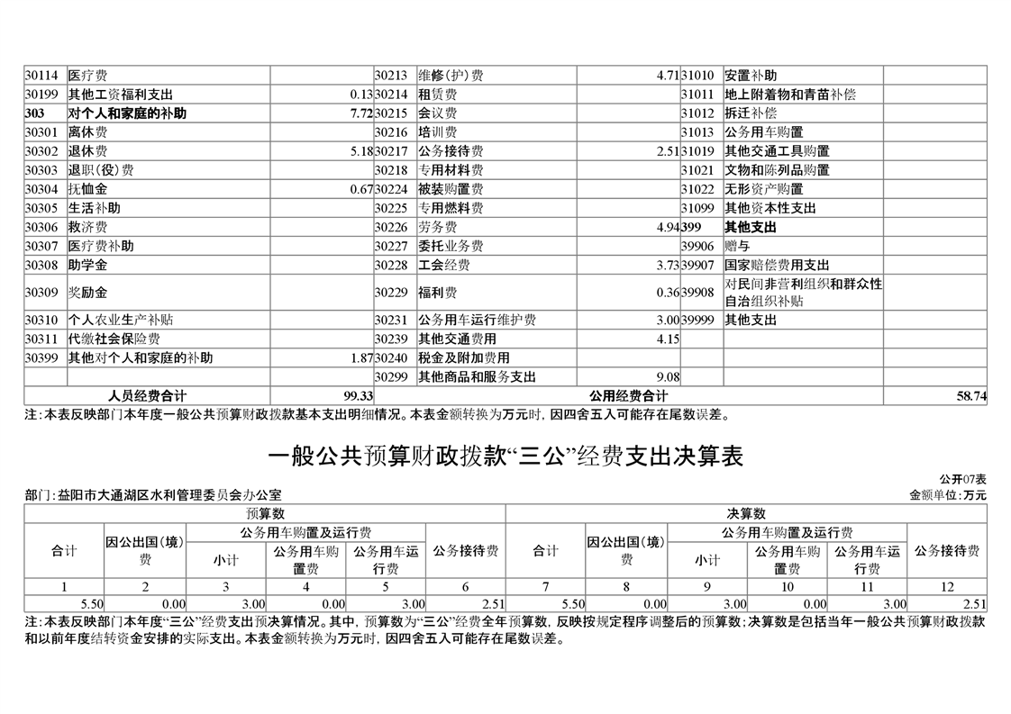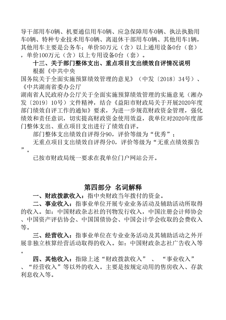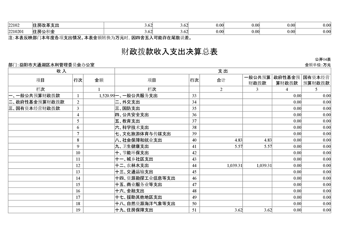 益阳市大通湖区水利管理委员会办公室2020年度部门决算公开说明