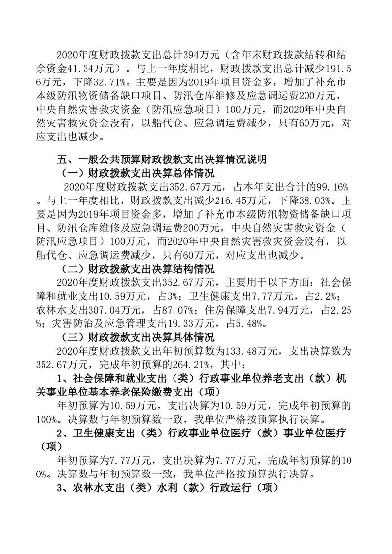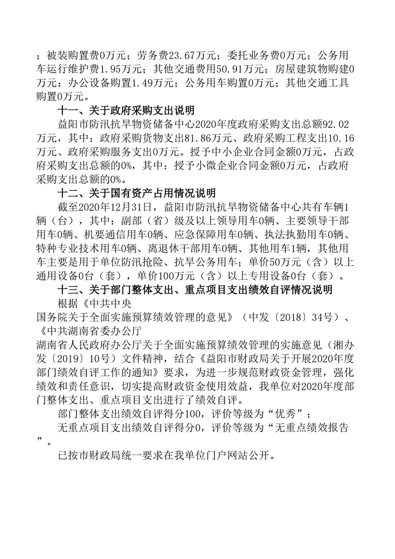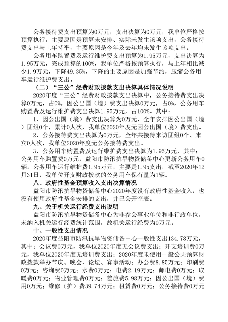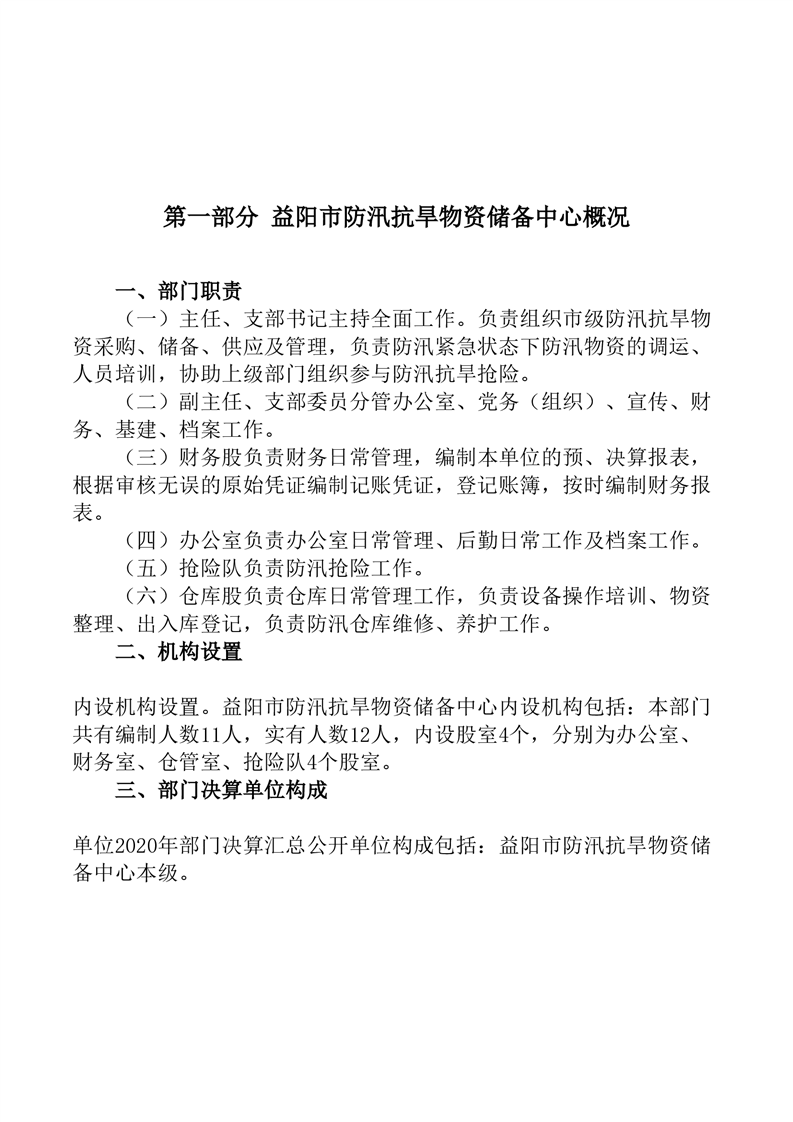 益阳市防汛抗旱物资储备中心2020年度部门决算公开说明