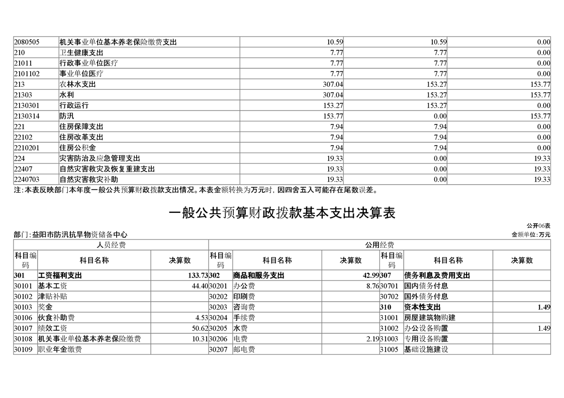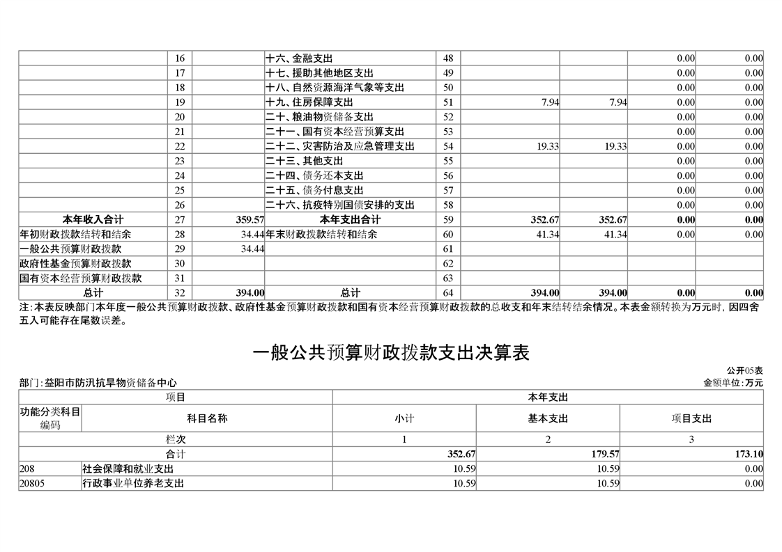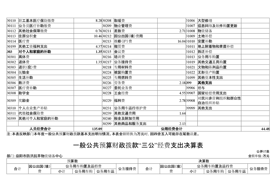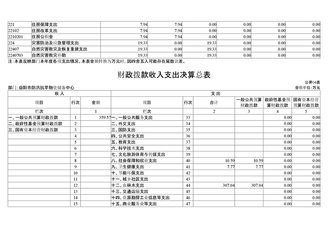益阳市防汛抗旱物资储备中心2020年度部门决算公开说明