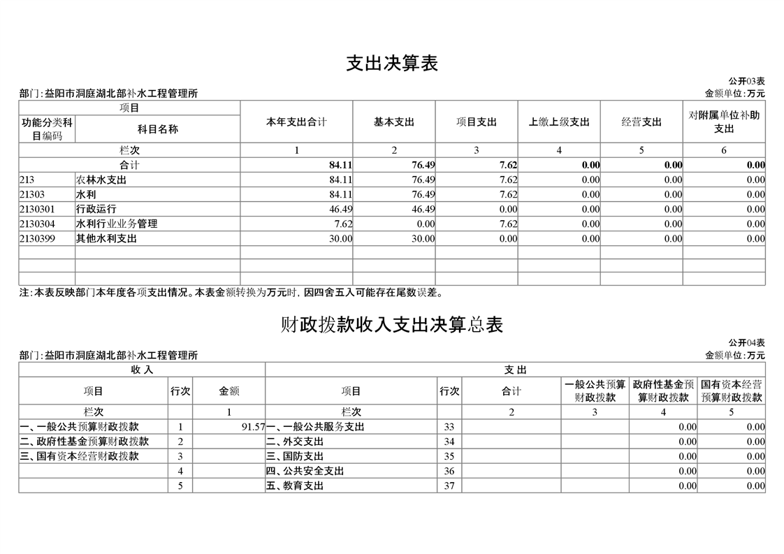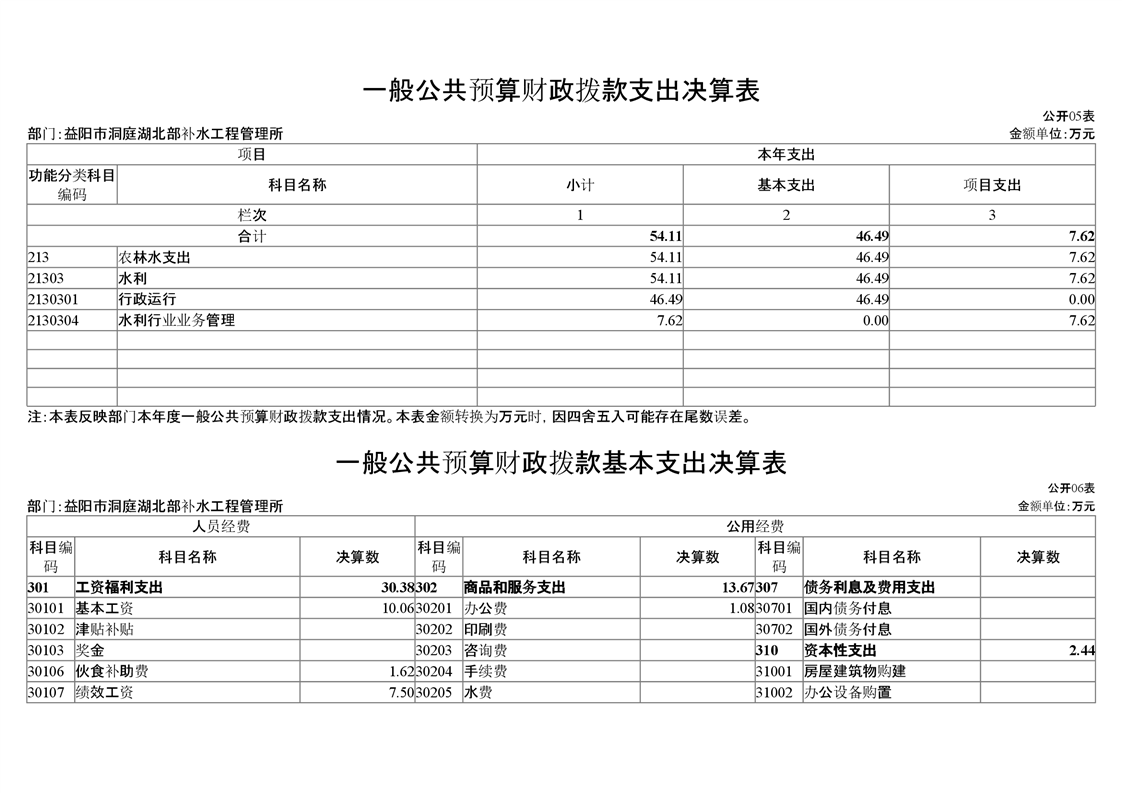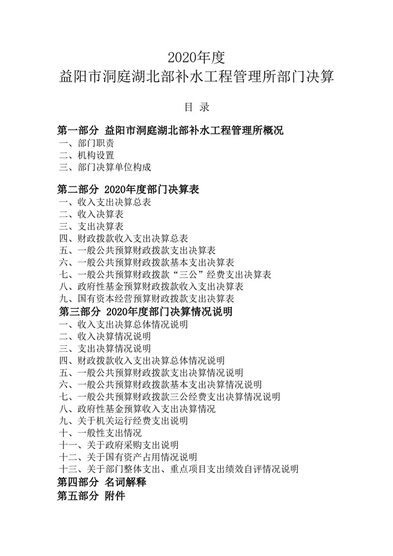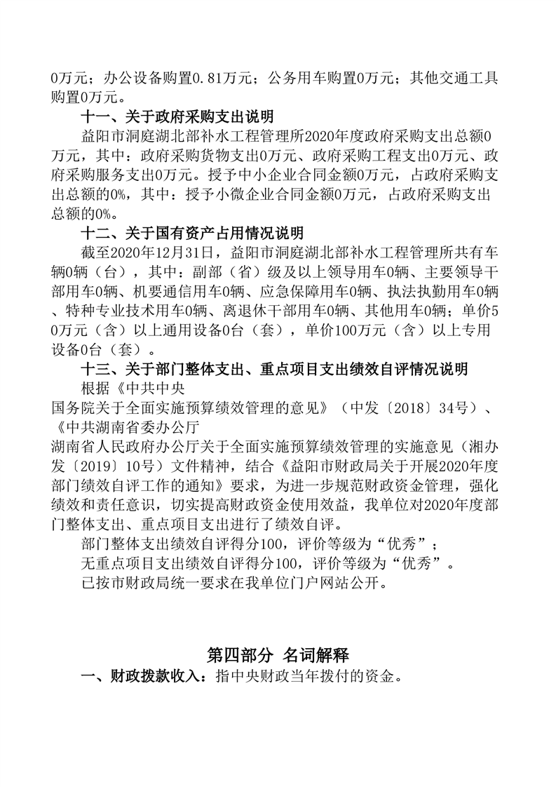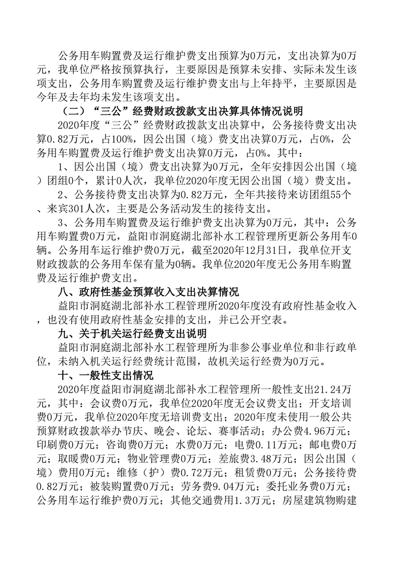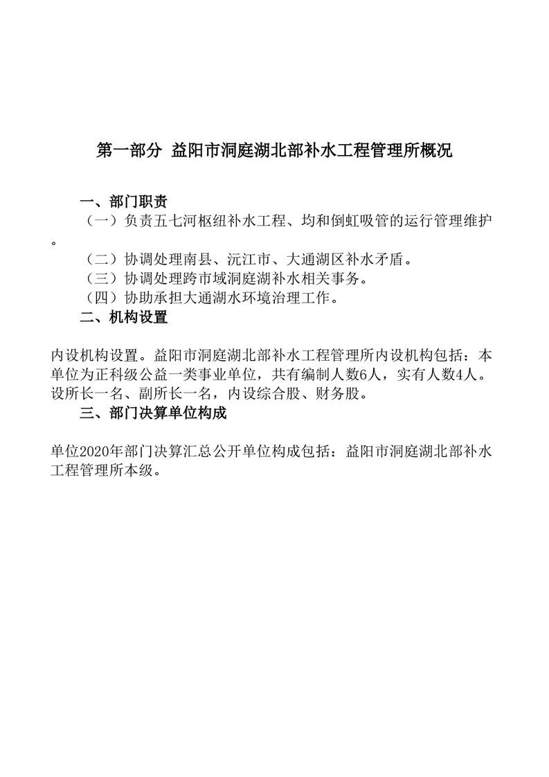 益阳市洞庭湖北部补水工程管理所2020年度部门决算公开说明