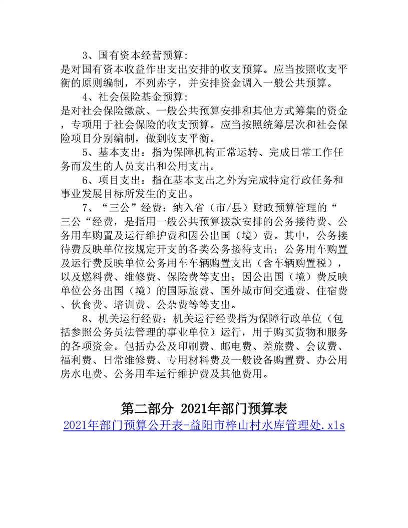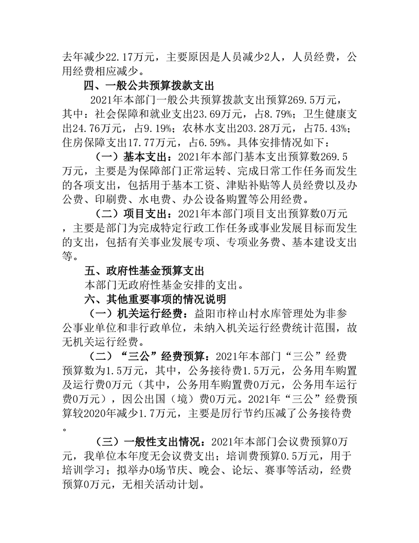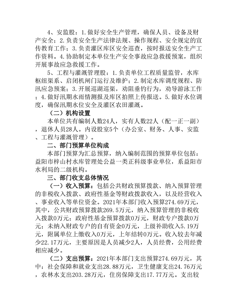 益阳市梓山村水库管理处2021年部门预算公开说明