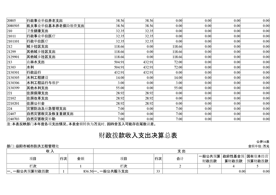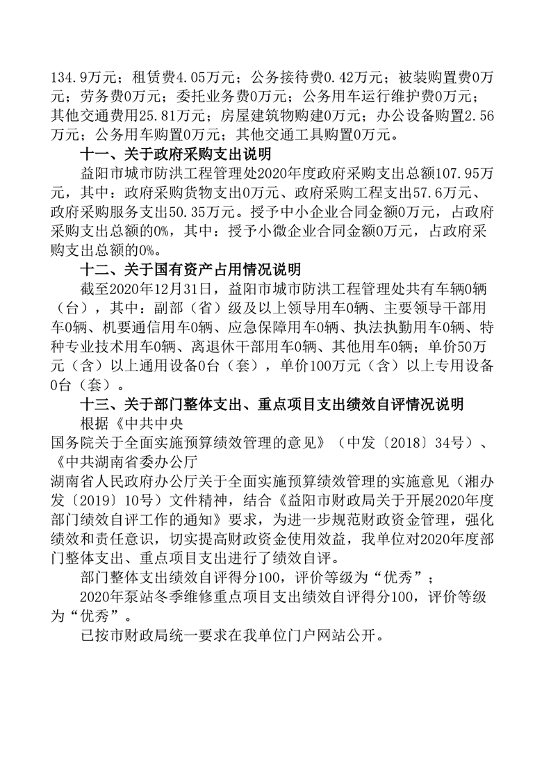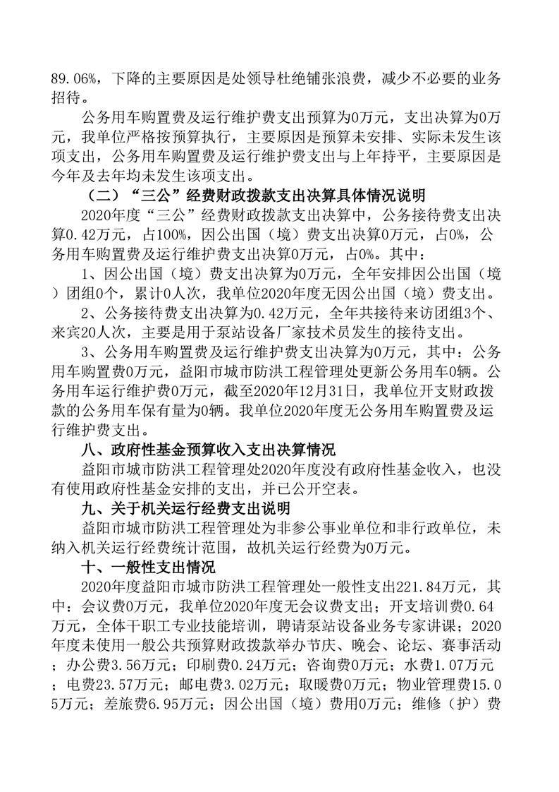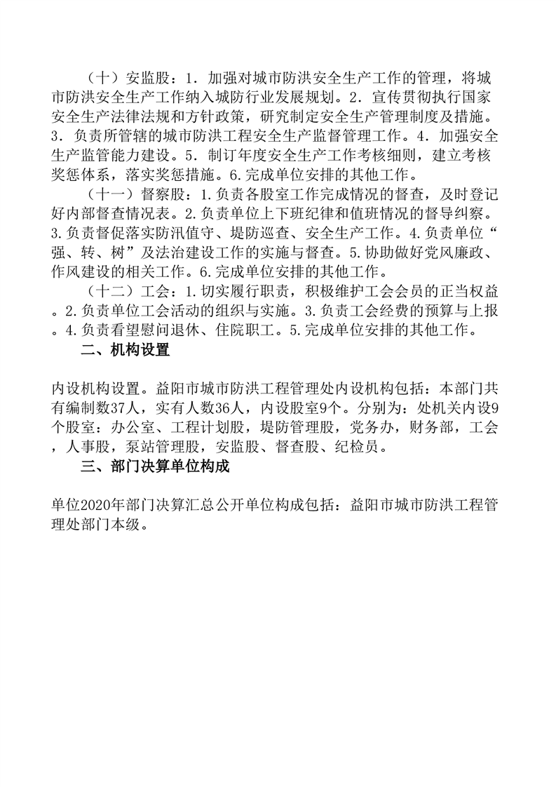 益阳市城市防洪工程管理处2020年度部门决算公开说明