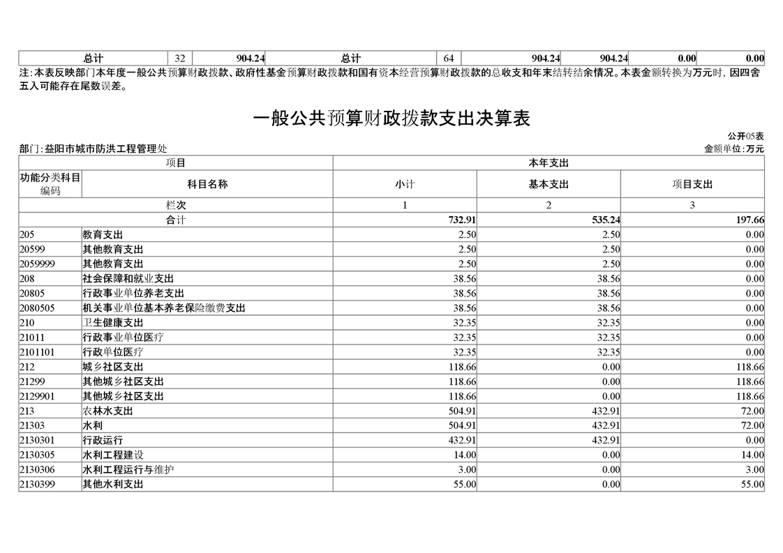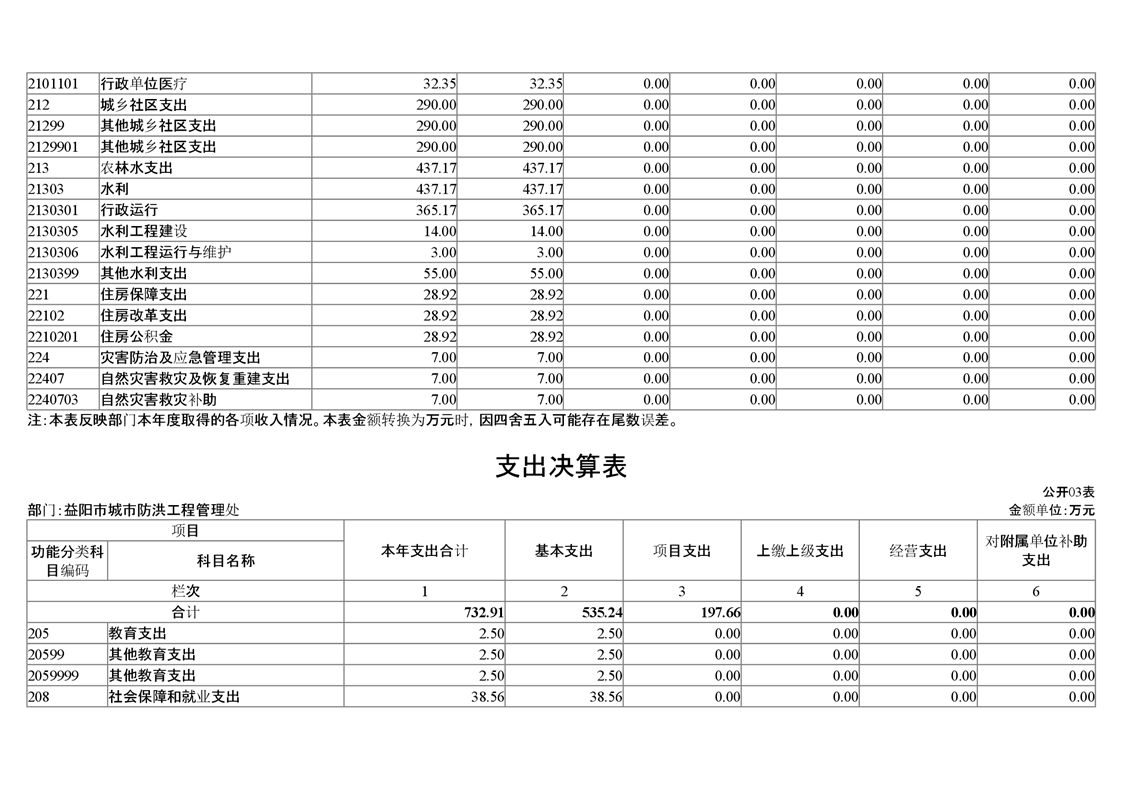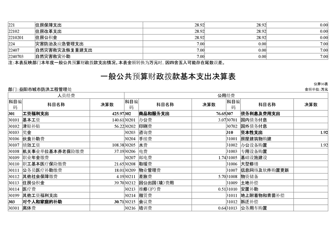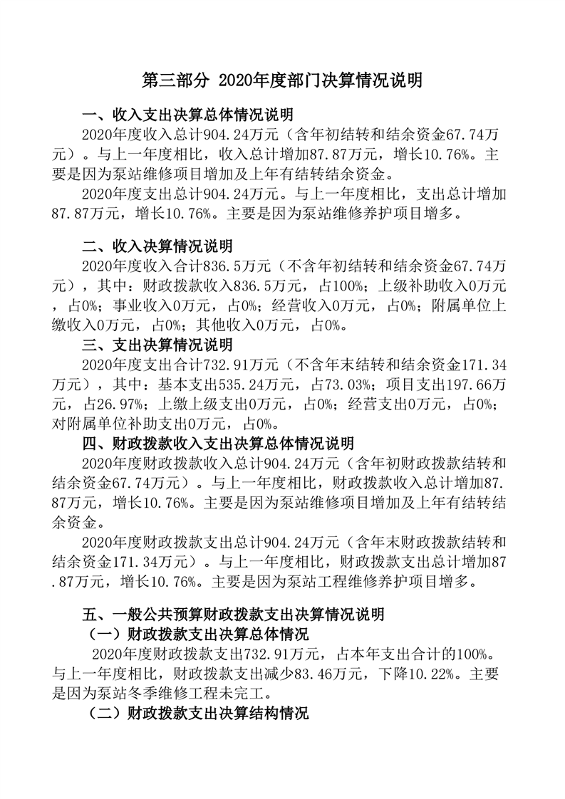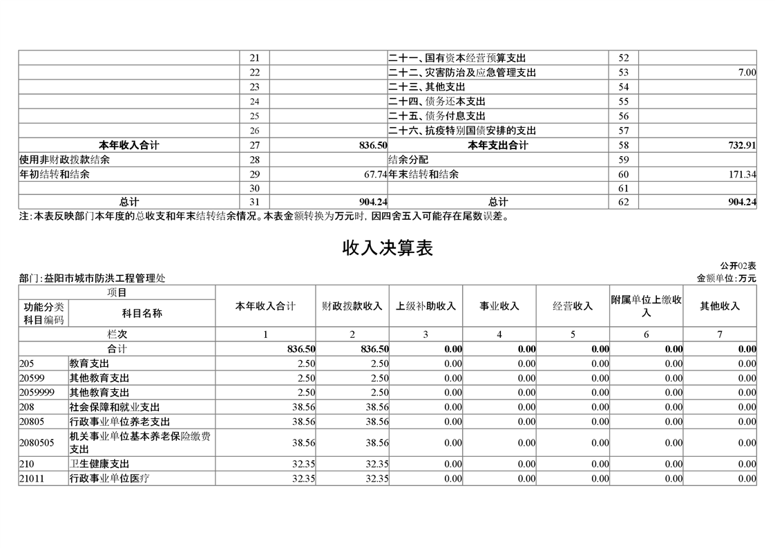 益阳市城市防洪工程管理处2020年度部门决算公开说明