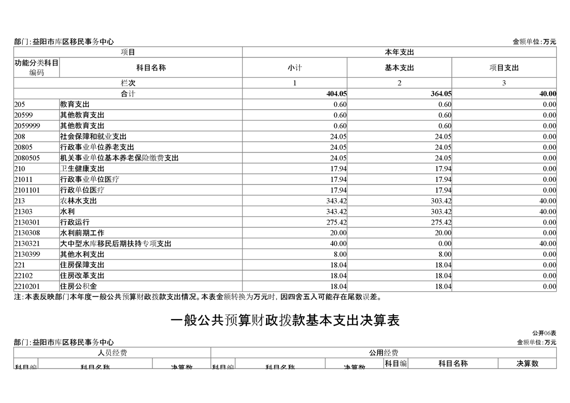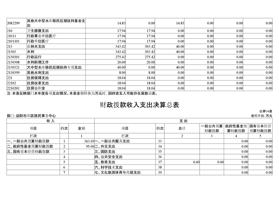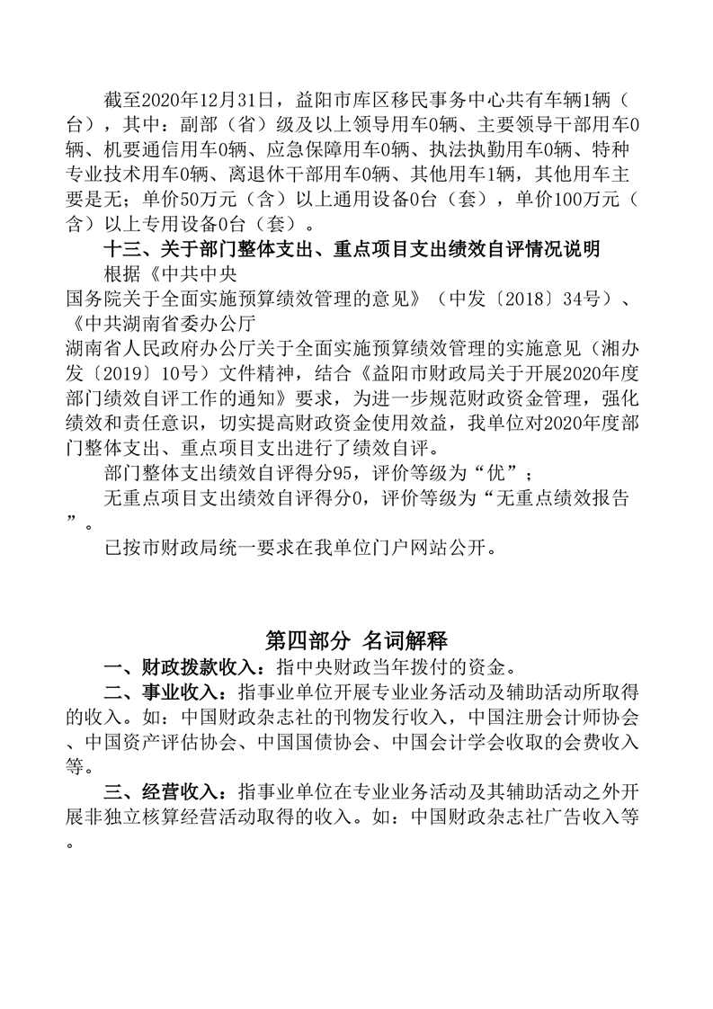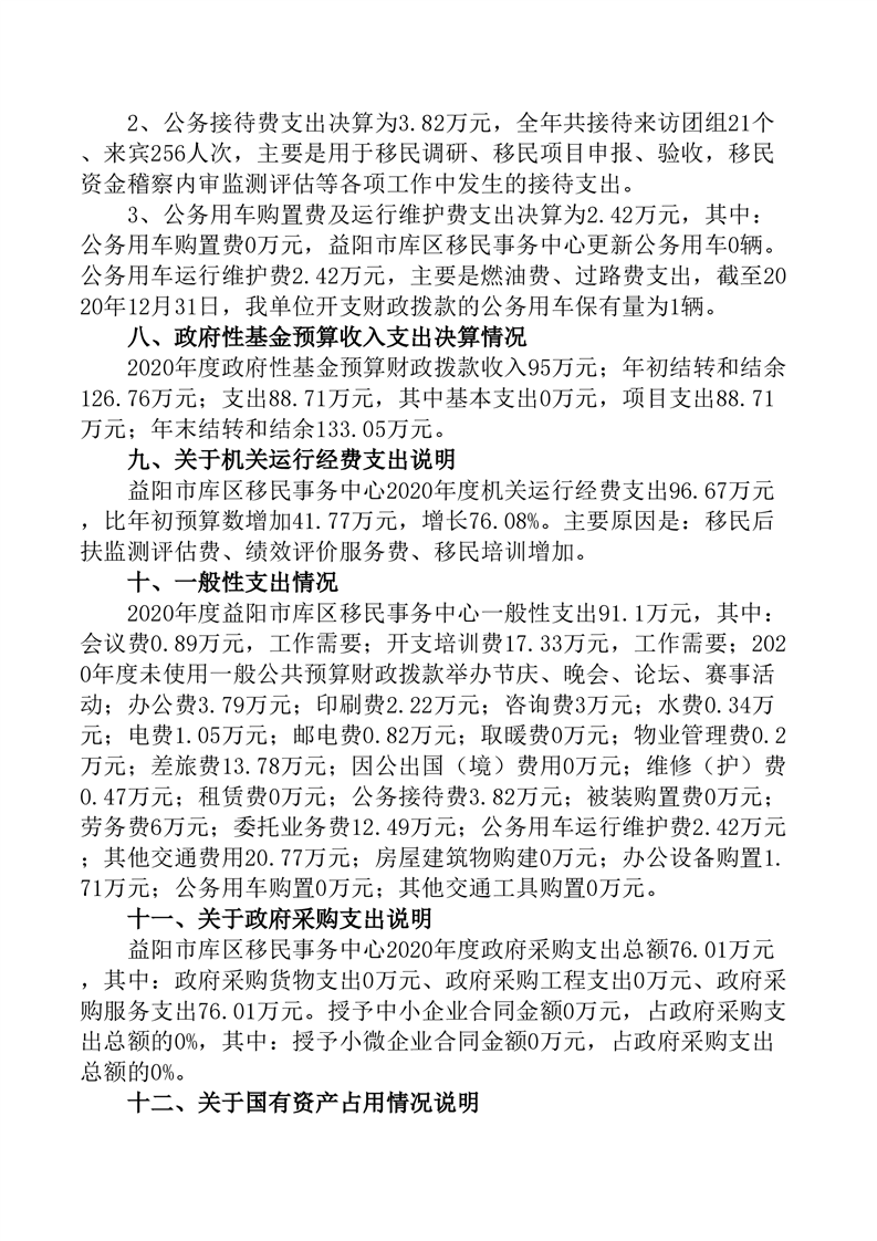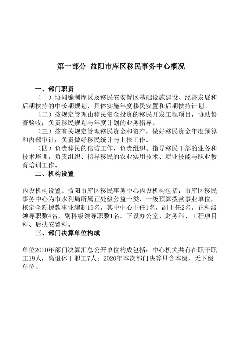 益阳市库区移民事务中心2020年度部门决算公开说明