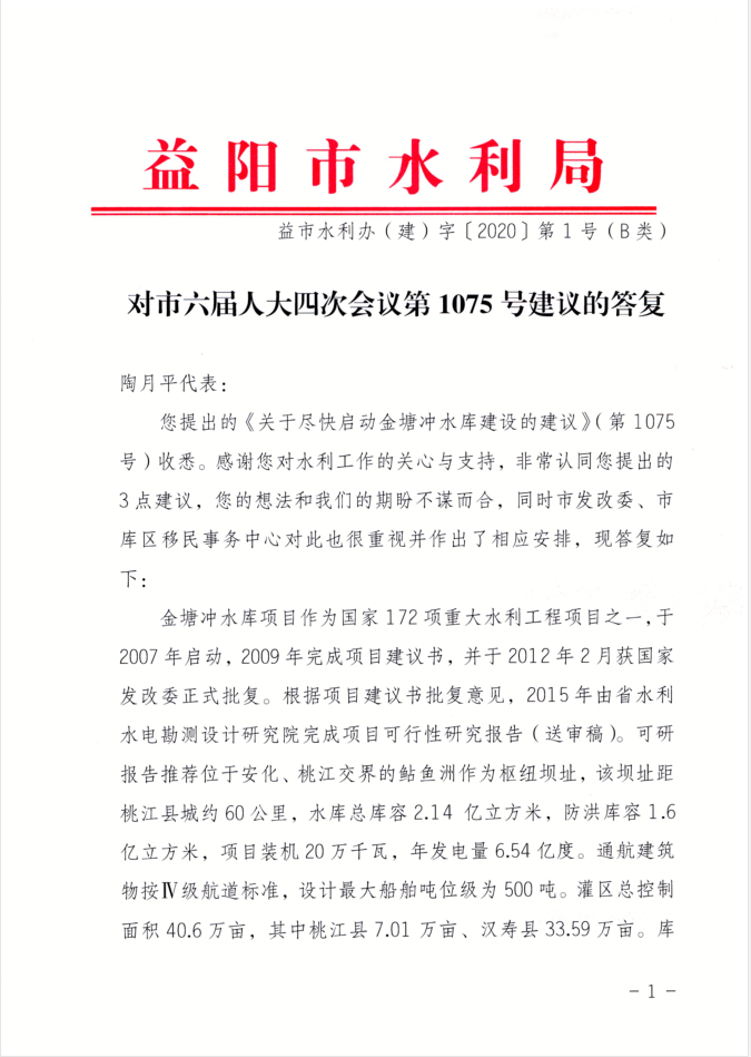 对市六届人大四次会议第1075号建议的答复