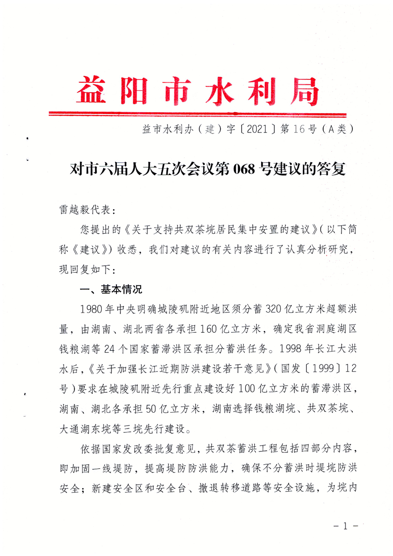 关于市六届人大五次会议第068号建议的答复