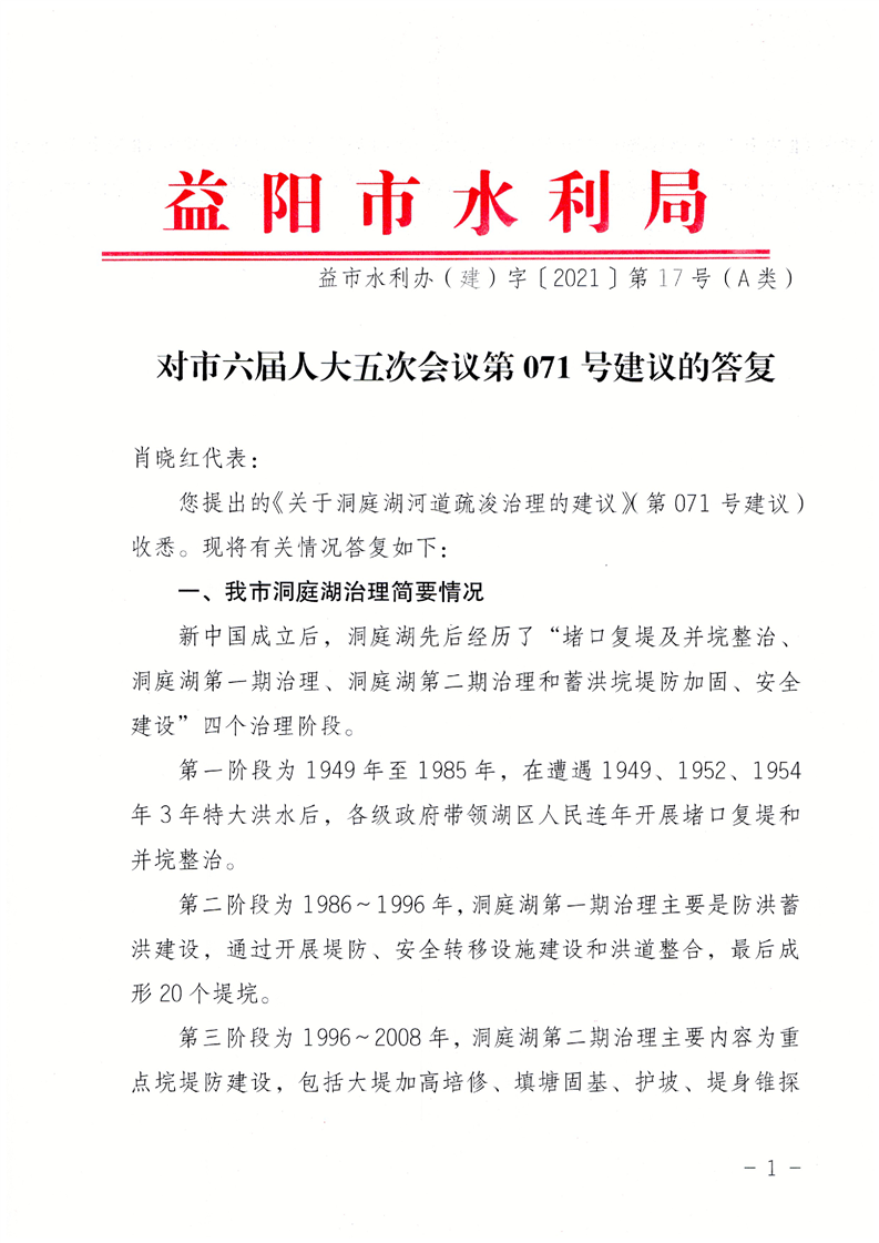 对市六届人大五次会议第071号建议的答复