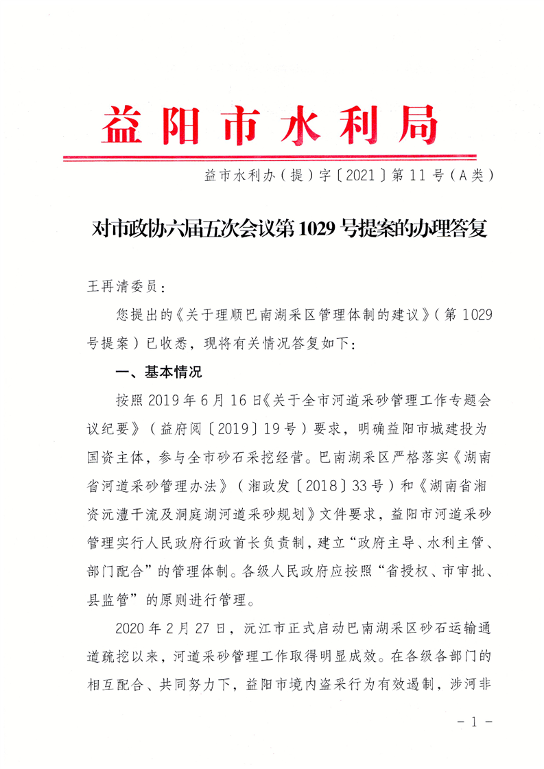 对市政协六届五次会议第1029号提案的答复