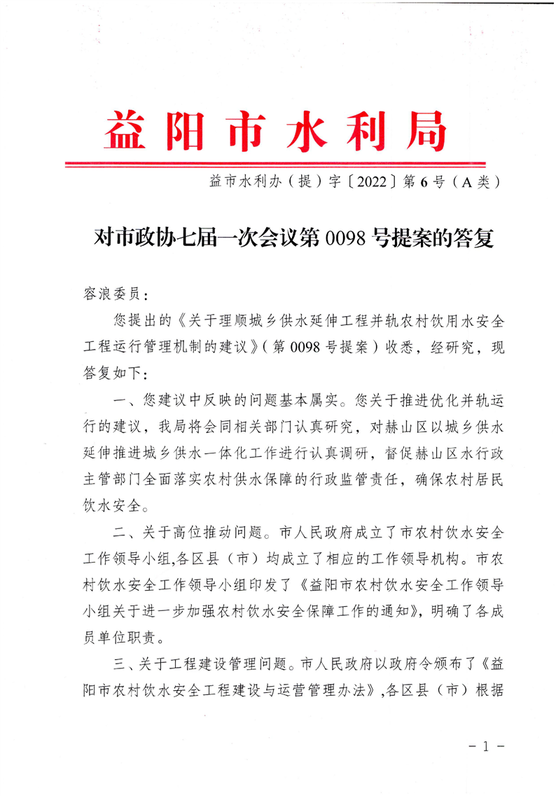 对市政协七届一次会议第0098号提案的答复