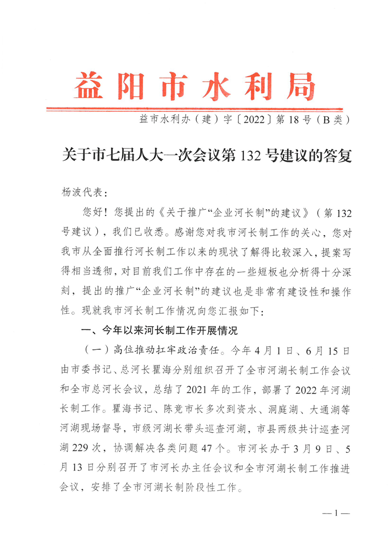 关于市七届人大一次会议第132号建议的答复