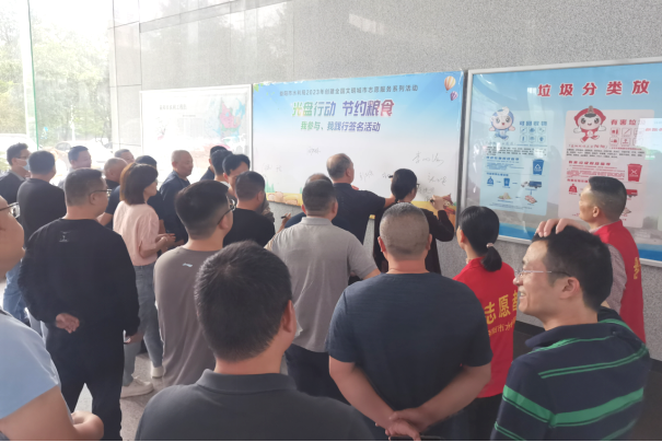 2023年9月28日上午,益阳市水利局组织开展“节约粮食 光盘行动”宣传教育与签名活动,在家的局领导和全体干部职工参加活动。
