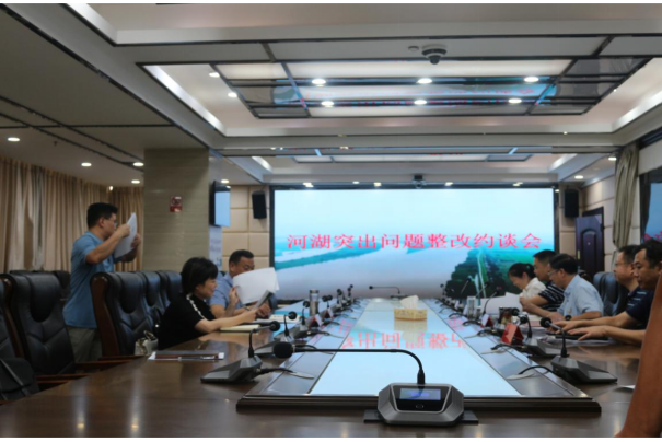为推进河湖突出问题整改,推动全市水环境质量改善,9月13日,市河长办常务副主任、市水利局局长周放鑫对问题整改进度较慢的赫山区、沅江市、南县河长办常务副主任、水利局长进行了集体约谈。约谈会上,市河长办副主任阳汉文通报了全市河湖突出问题整改不力的具体情况。赫山区、沅江市、南县的河长办负责同志分别做了表态发言。市纪委监委驻水利局纪检监察组组长李四海指出三区县(市)要积极调度,加快推动问题整改,市纪委监委将对问题整改情况进行跟踪督查。
