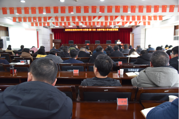 12月20日,市水利局组织进行2023年第15次学习教育培训,党组书记、局长周放鑫讲授专题党课。会议由党组成员、副局长王进锋主持,局机关全体干部职工和城区直属单位班子成员参加培训。