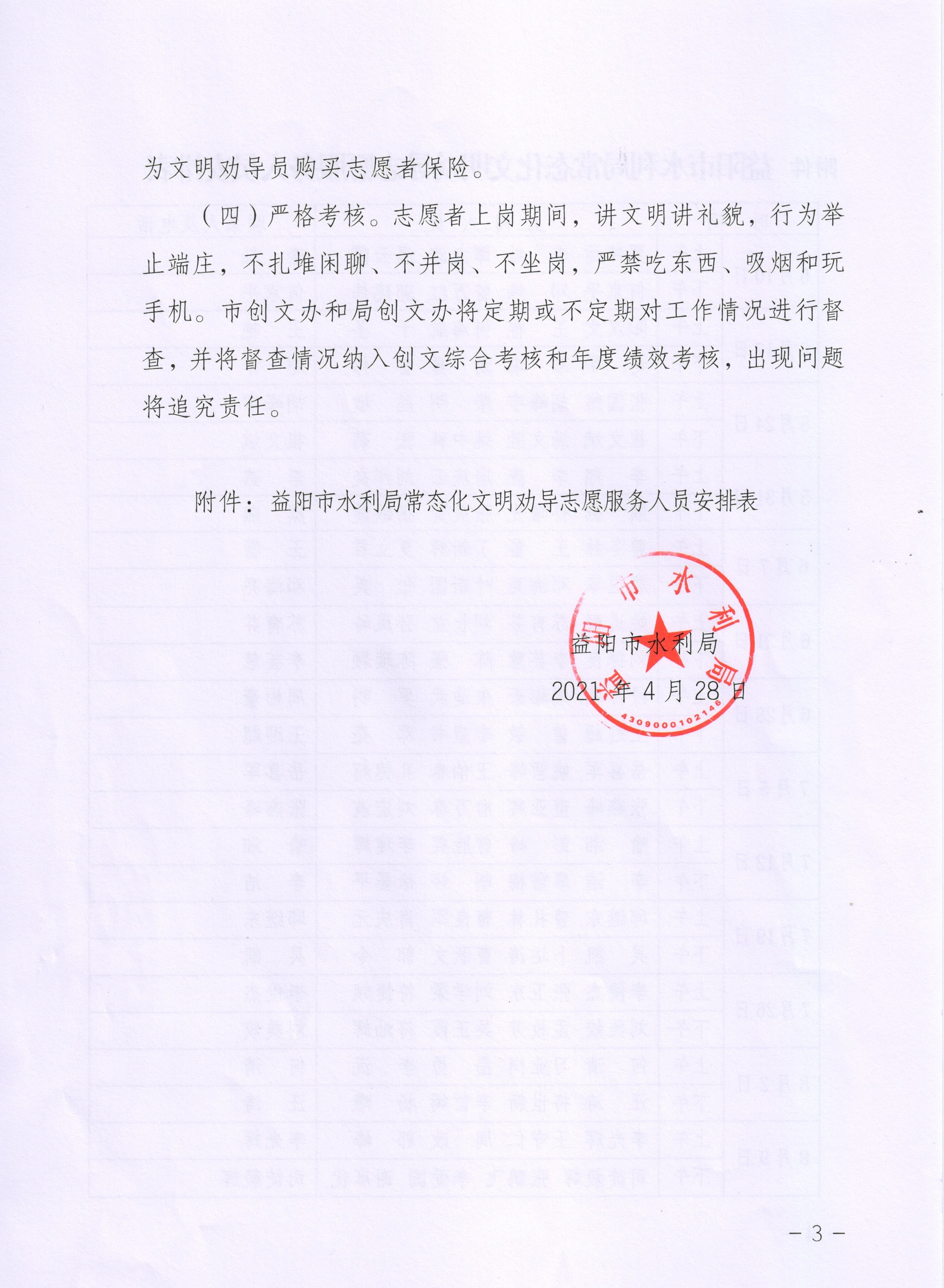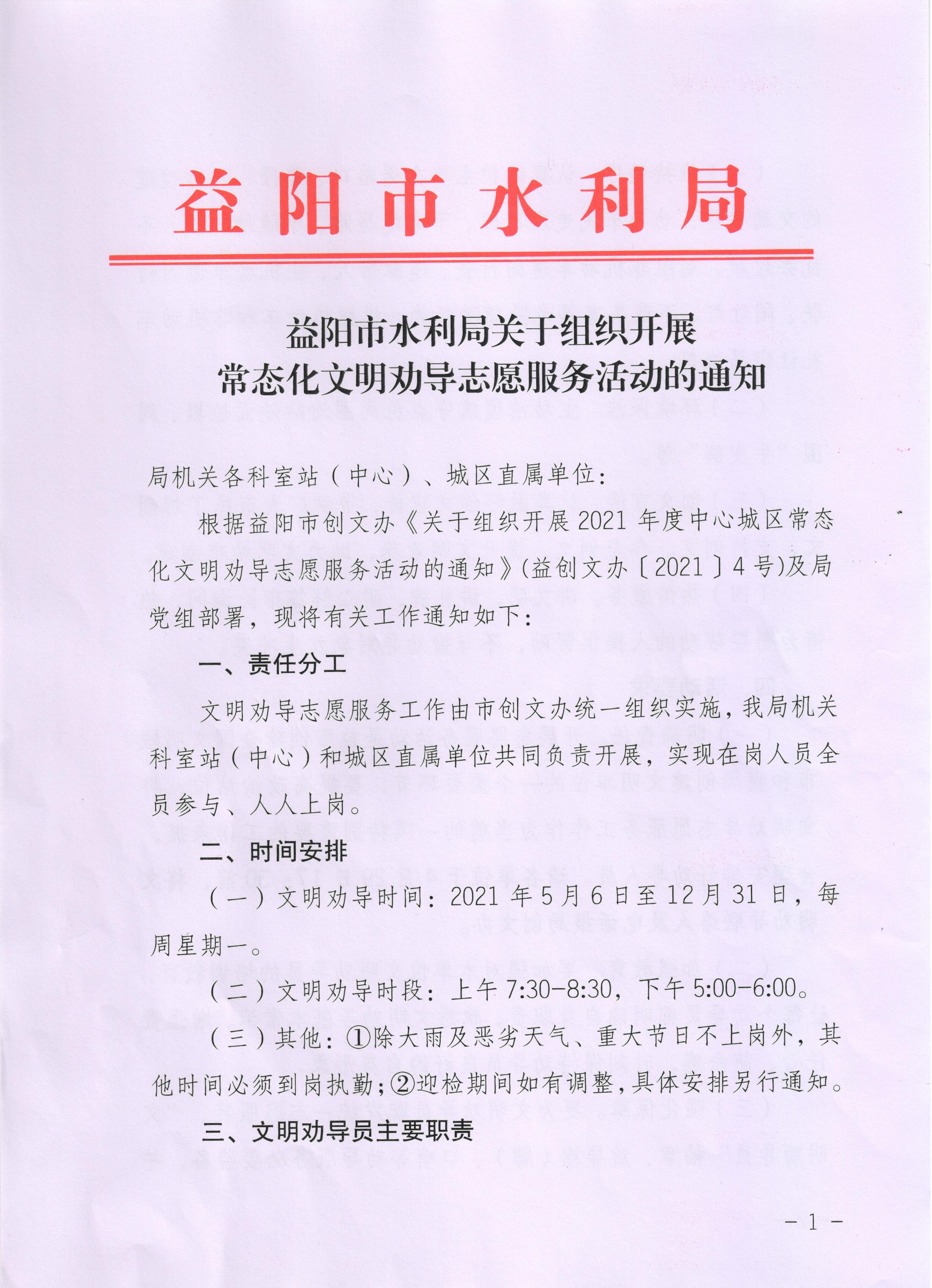 益阳市水利局关于组织开展常态化文明劝导志愿服务活动的通知