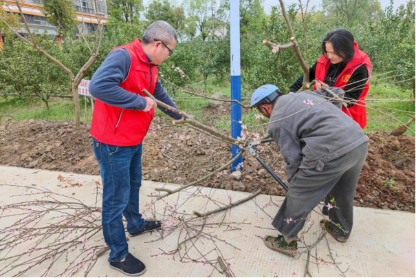下午1点,由林焱同志带队准时来到指定地点开始植树。植树现场,大家分工协作,扛苗散苗、裁剪树枝、挥锹铲土、扶苗踏实、挖坑栽树、培实新土、提桶浇水,每道工序都力求到位,栽得认真、干得卖力,整个现场一片热火朝天的劳动景象。活动持续开展半天,20多株桃花树在院内主干道旁安家落户,为院内增添一片春色。