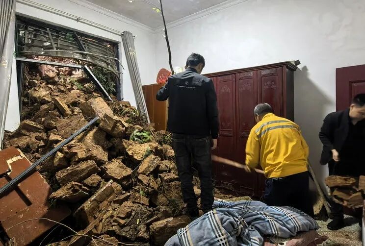 4月11日凌晨1时许,桃江县桃花江镇横木村一农户后山发生山体滑坡,滑方体量近300立方米,其中约10立方米的岩石撞击门窗,致房屋多处受损。因预警精准、响应迅速、群众提前转移,该户5名成员全员安全,实现灾害零伤亡。