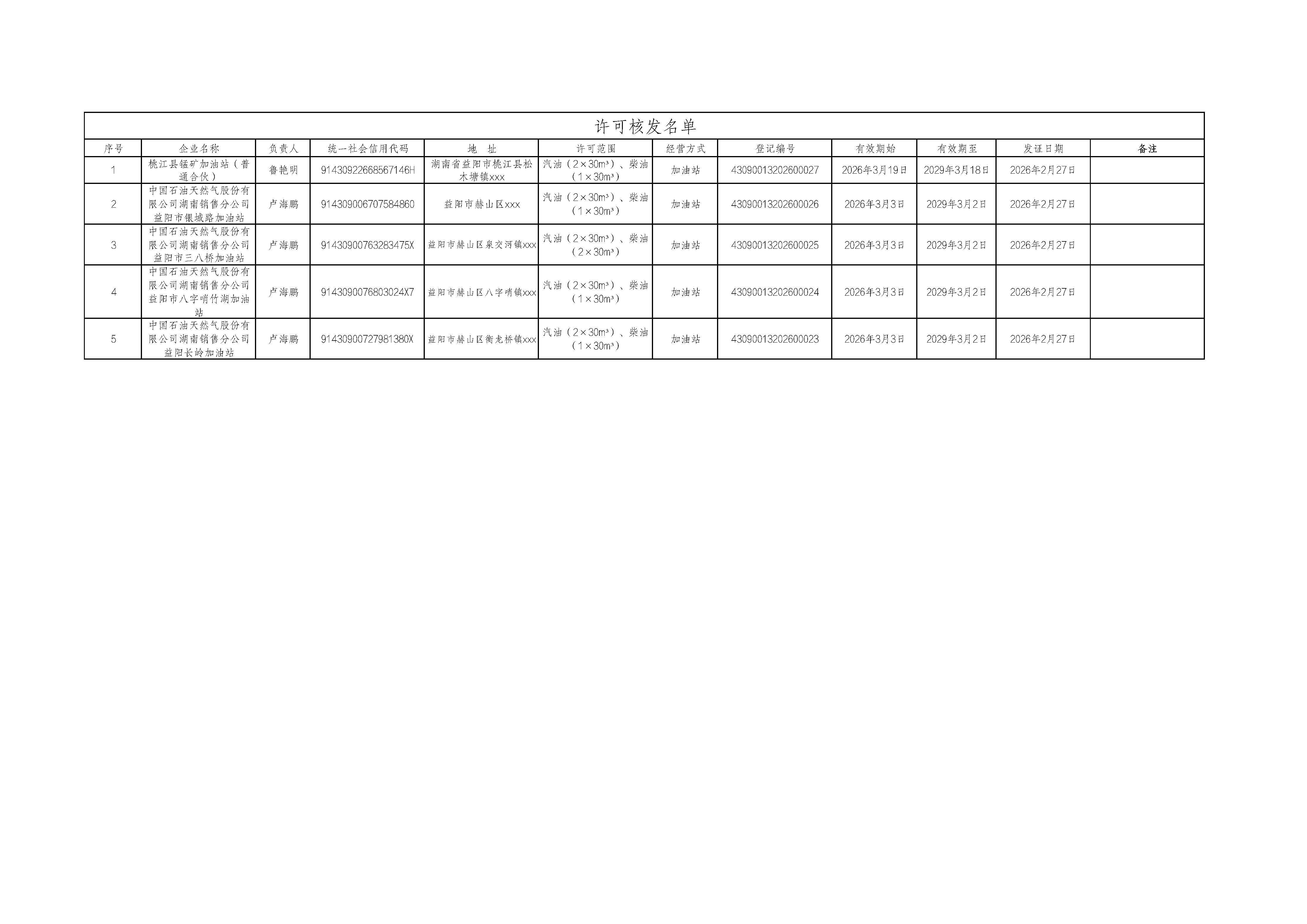 根据《危险化学品安全管理条例》、《危险化学品经营许可证管理办法》等有关规定,经企业申请,2026年2月27日,我局依法对申请企业实施行政许可审查,经核准颁发5家企业《危险化学品经营许可证》,现予以公示。