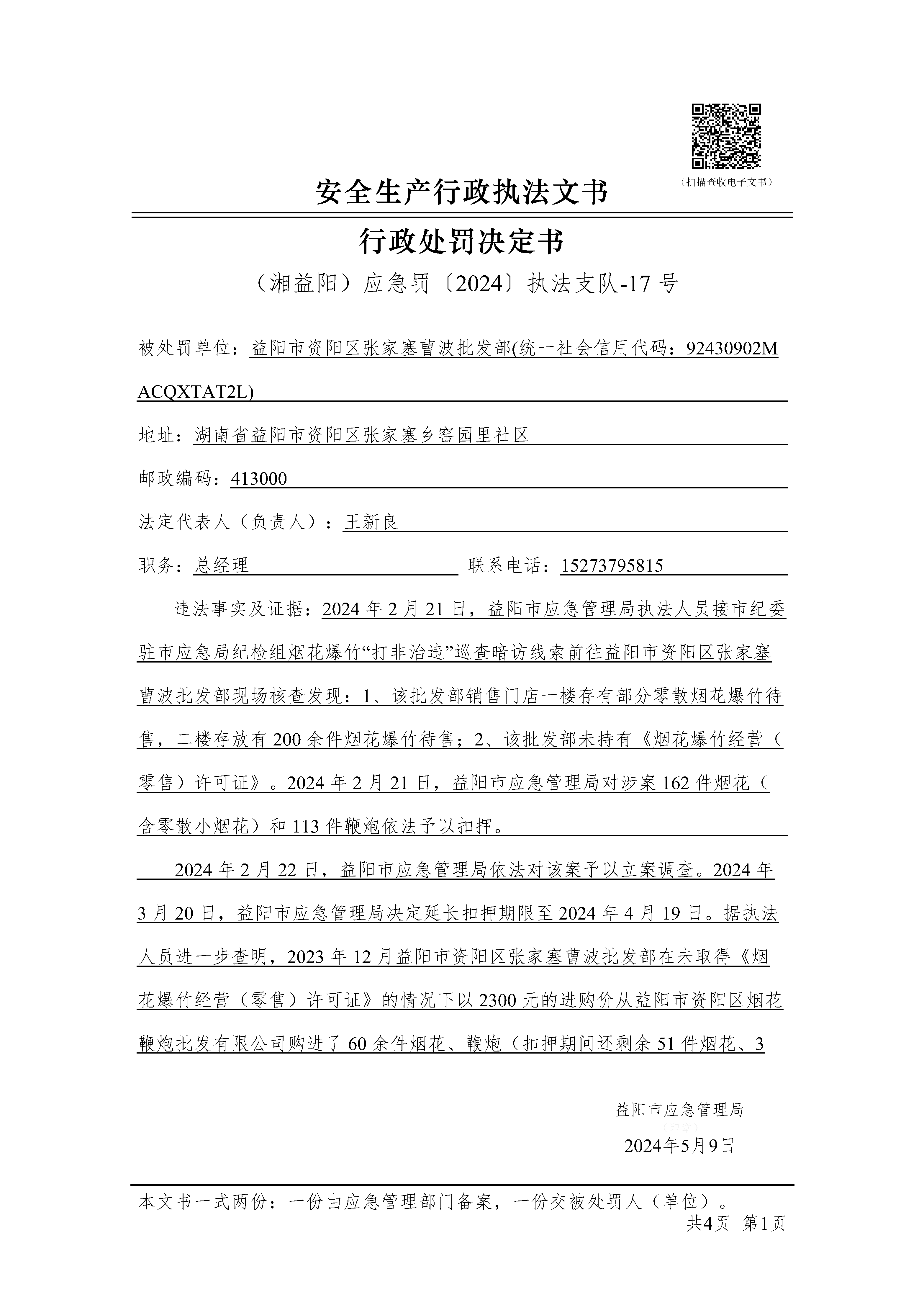 (湘益阳)应急罚〔2024〕执法支队-17 号