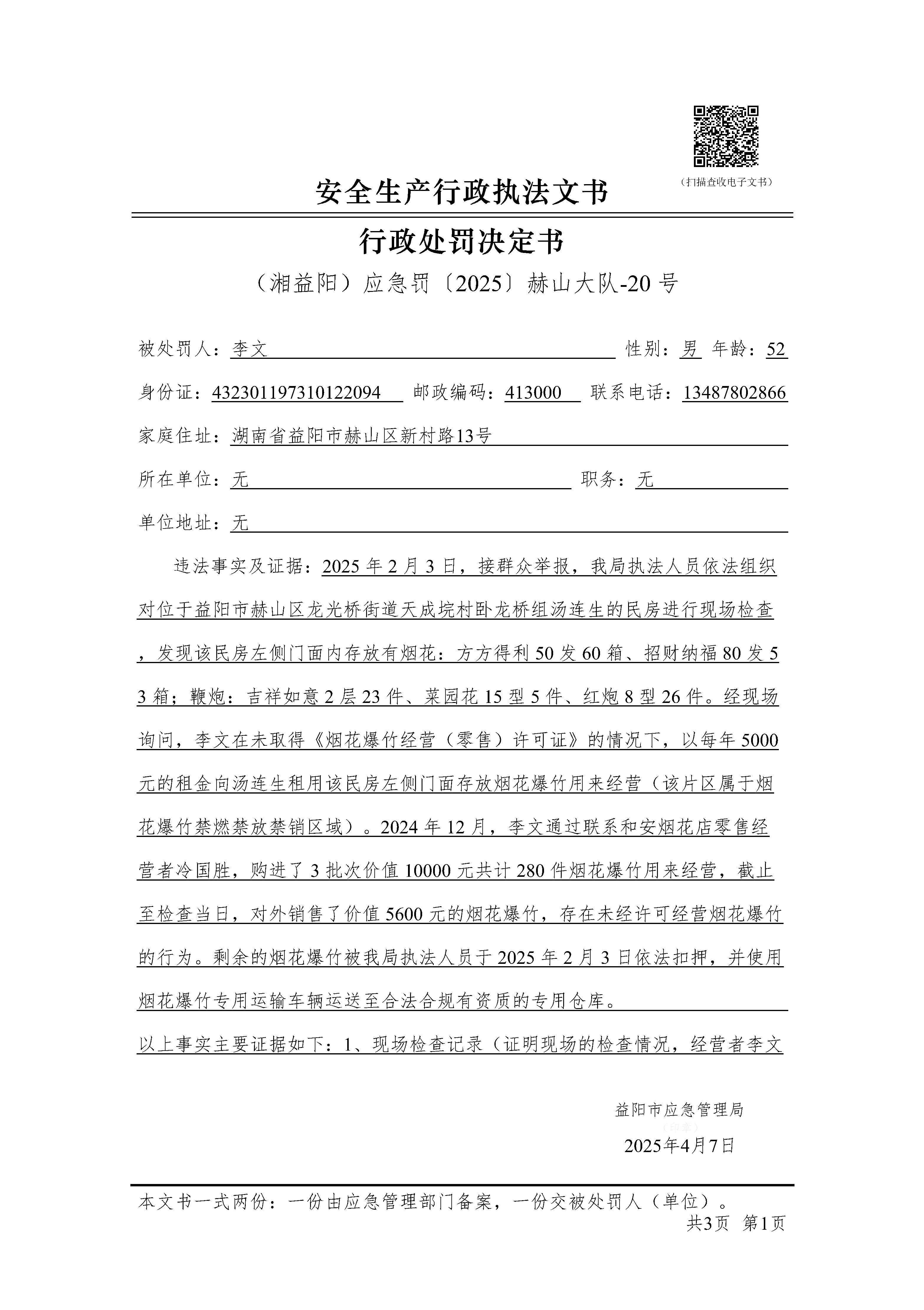 (湘益阳)应急罚〔2025〕赫山大队-20 号