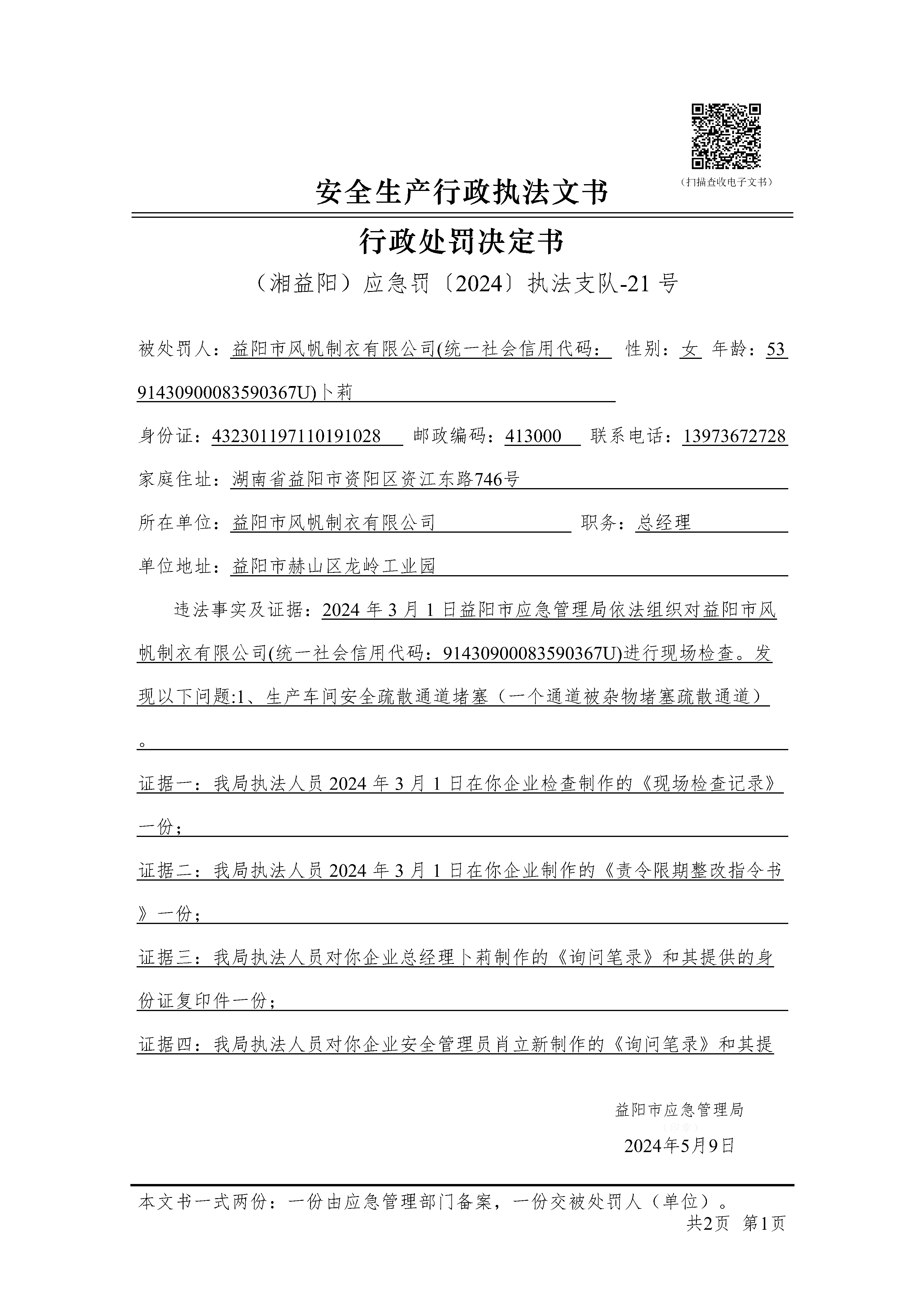 (湘益阳)应急罚〔2024〕执法支队-21 号