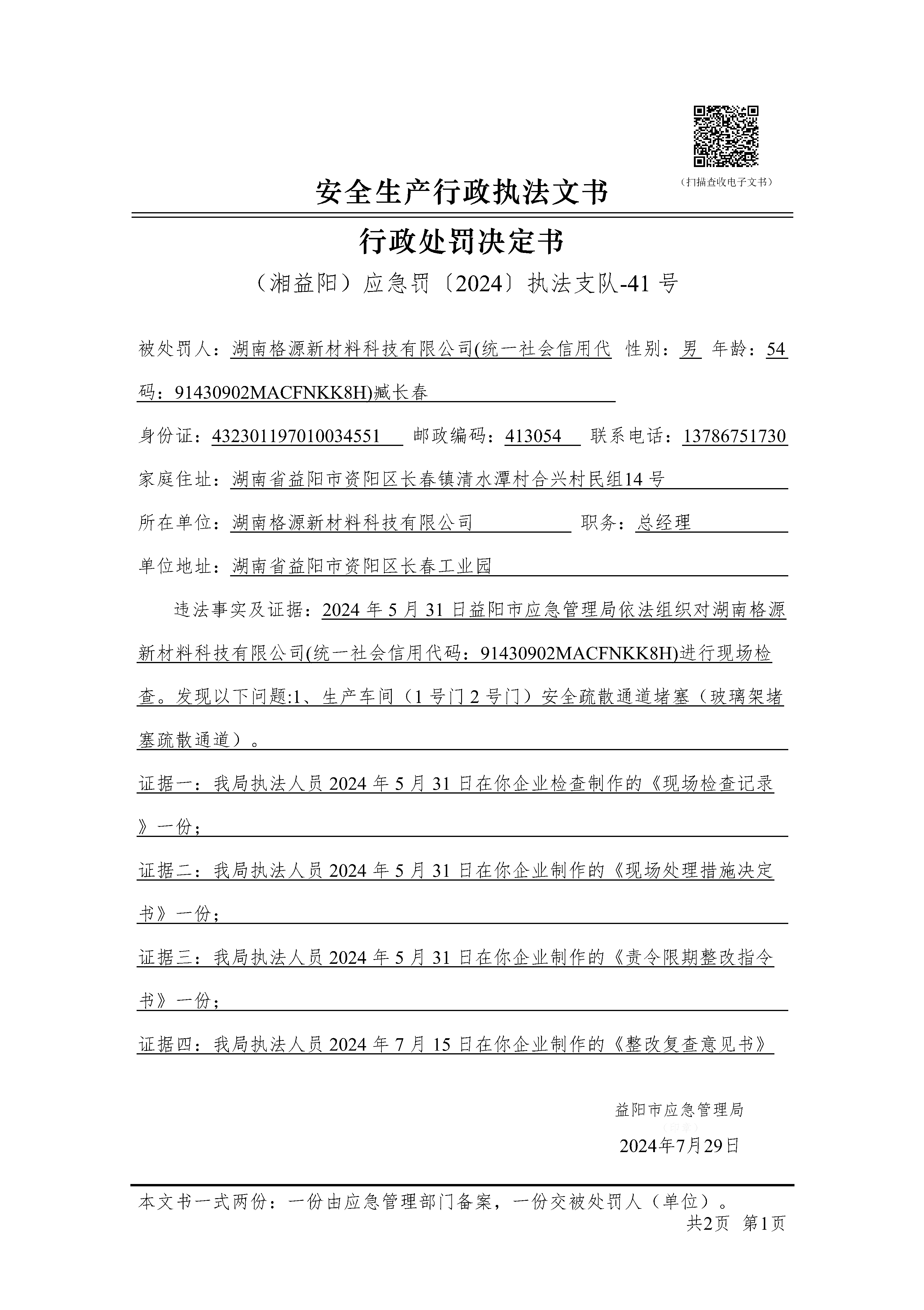 (湘益阳)应急罚〔2024〕执法支队-41 号