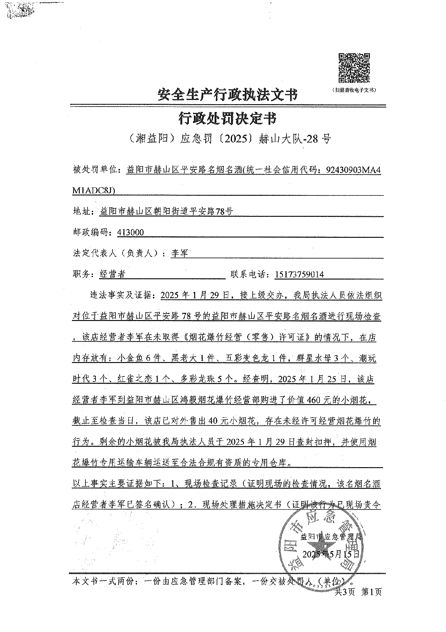 (湘益阳) 应急罚〔2025〕赫山大队-28号