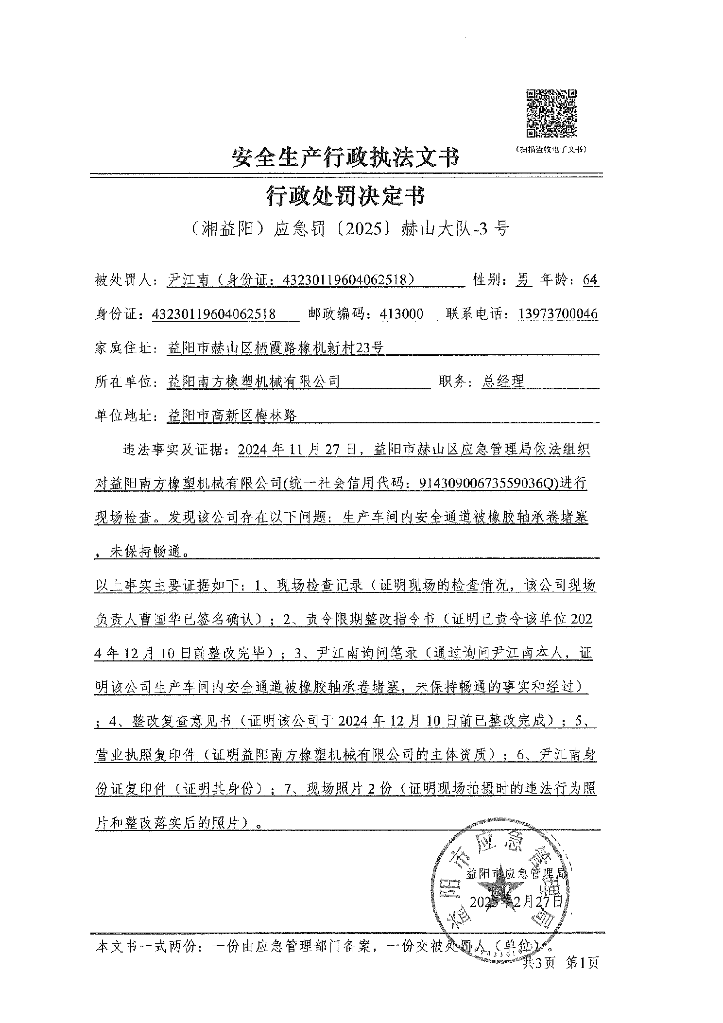 (湘益阳) 应急罚〔2025〕赫山大队-1.2.3号