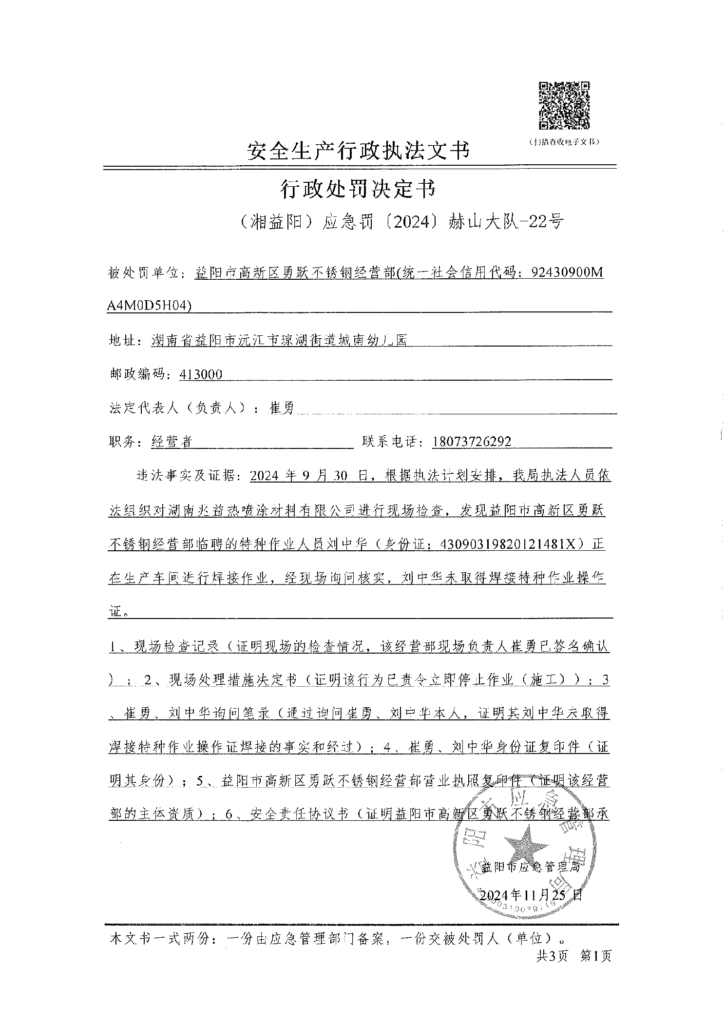 (湘益阳) 应急罚〔2024〕赫山大队-22号