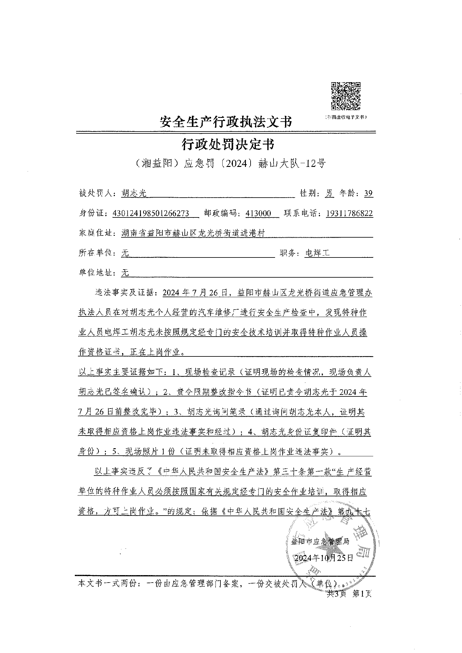 (湘益阳) 应急罚〔2024〕赫山大队-12号