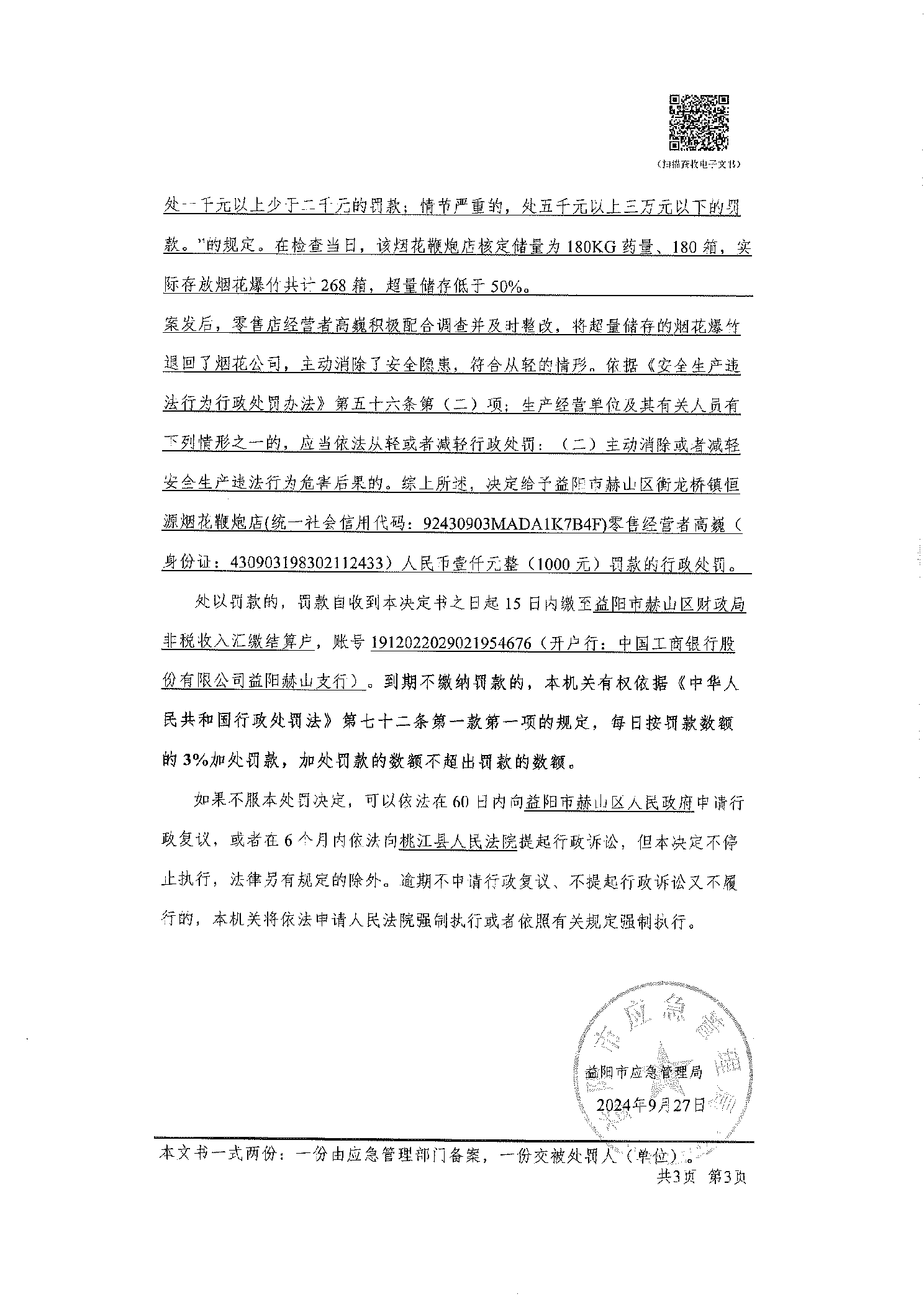 (湘益阳) 应急罚〔2024〕赫山大队-3号