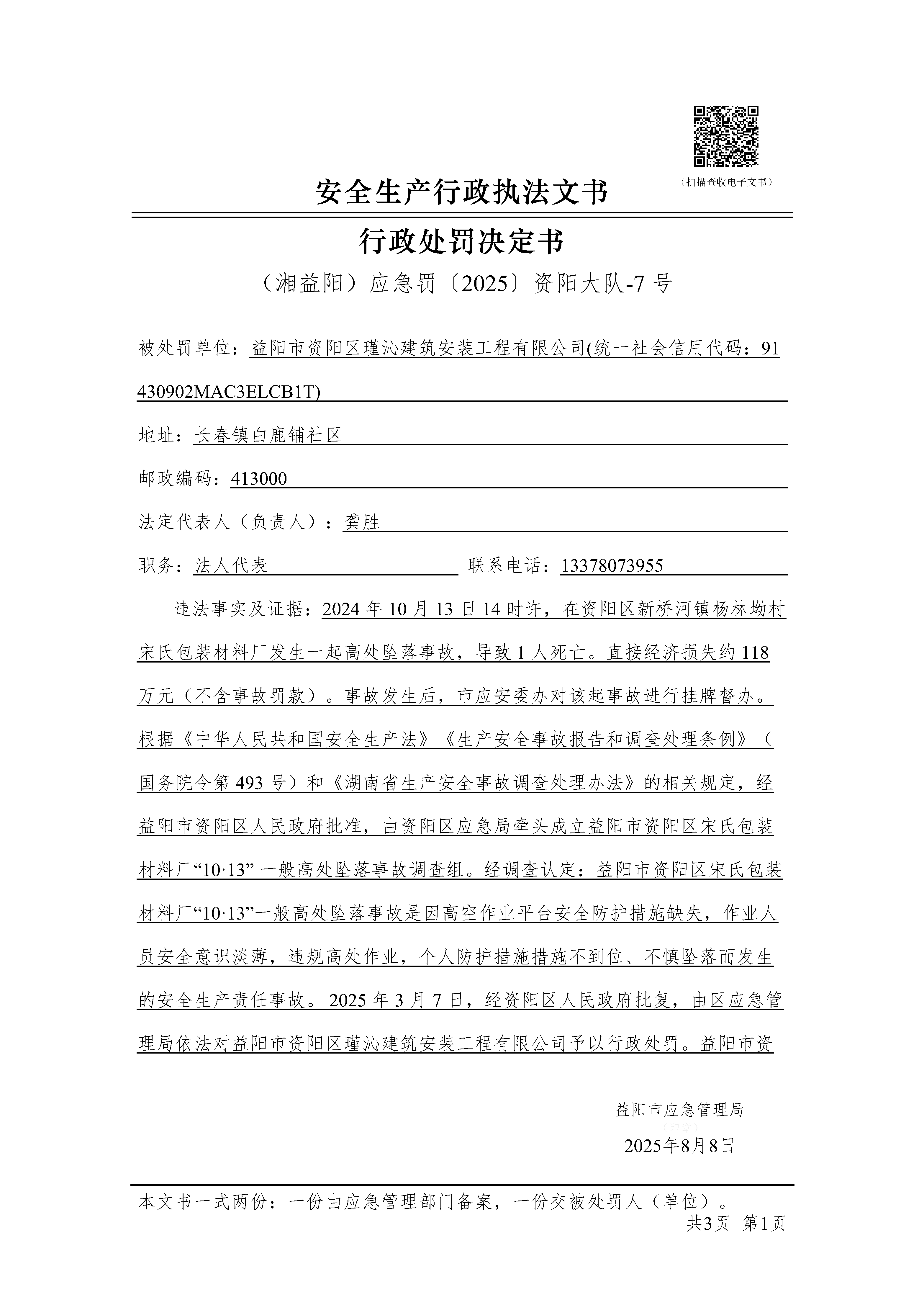 (湘益阳)应急罚〔2025〕资阳大队-7 号