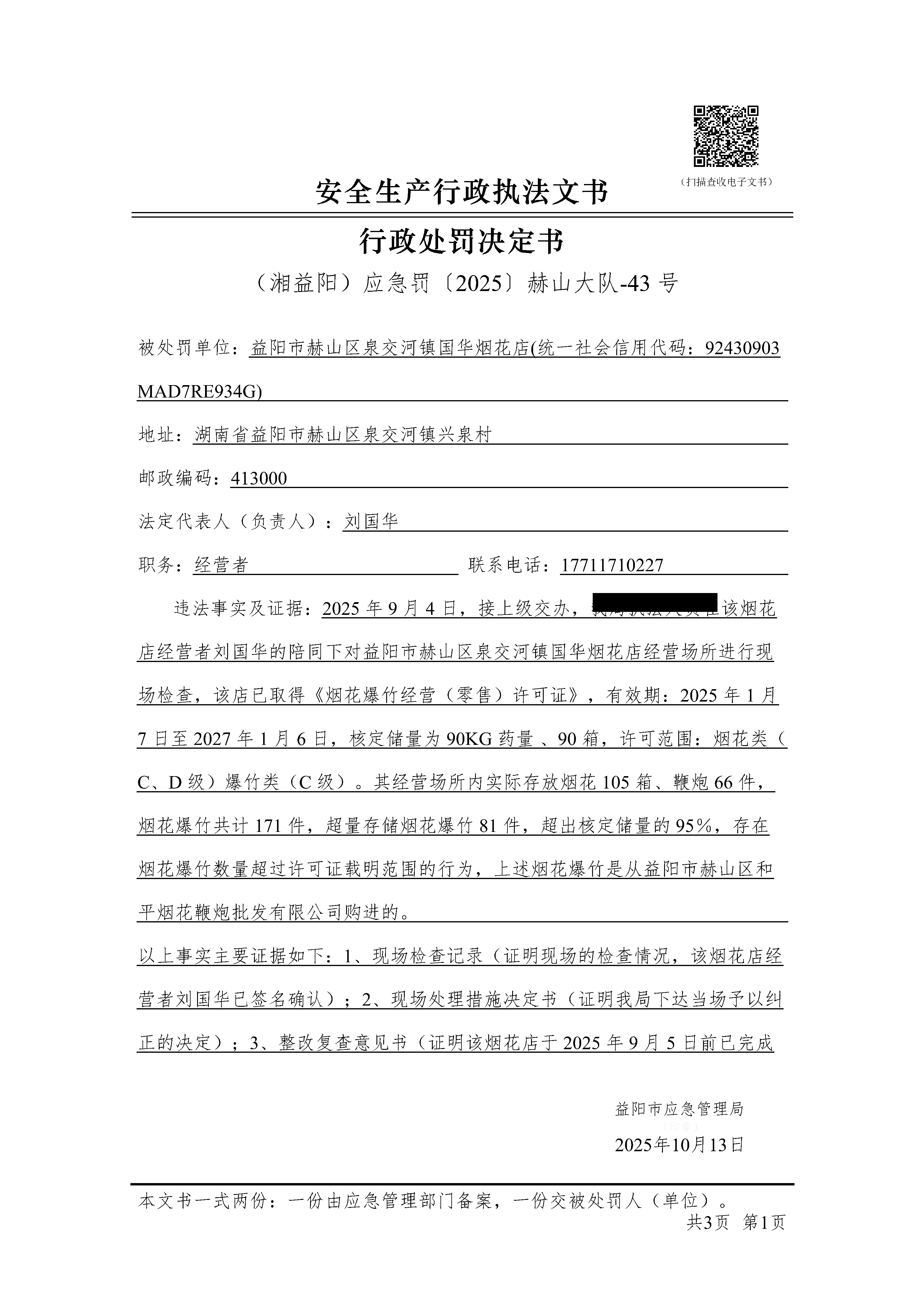 (湘益阳)应急罚〔2025〕赫山大队-43 号