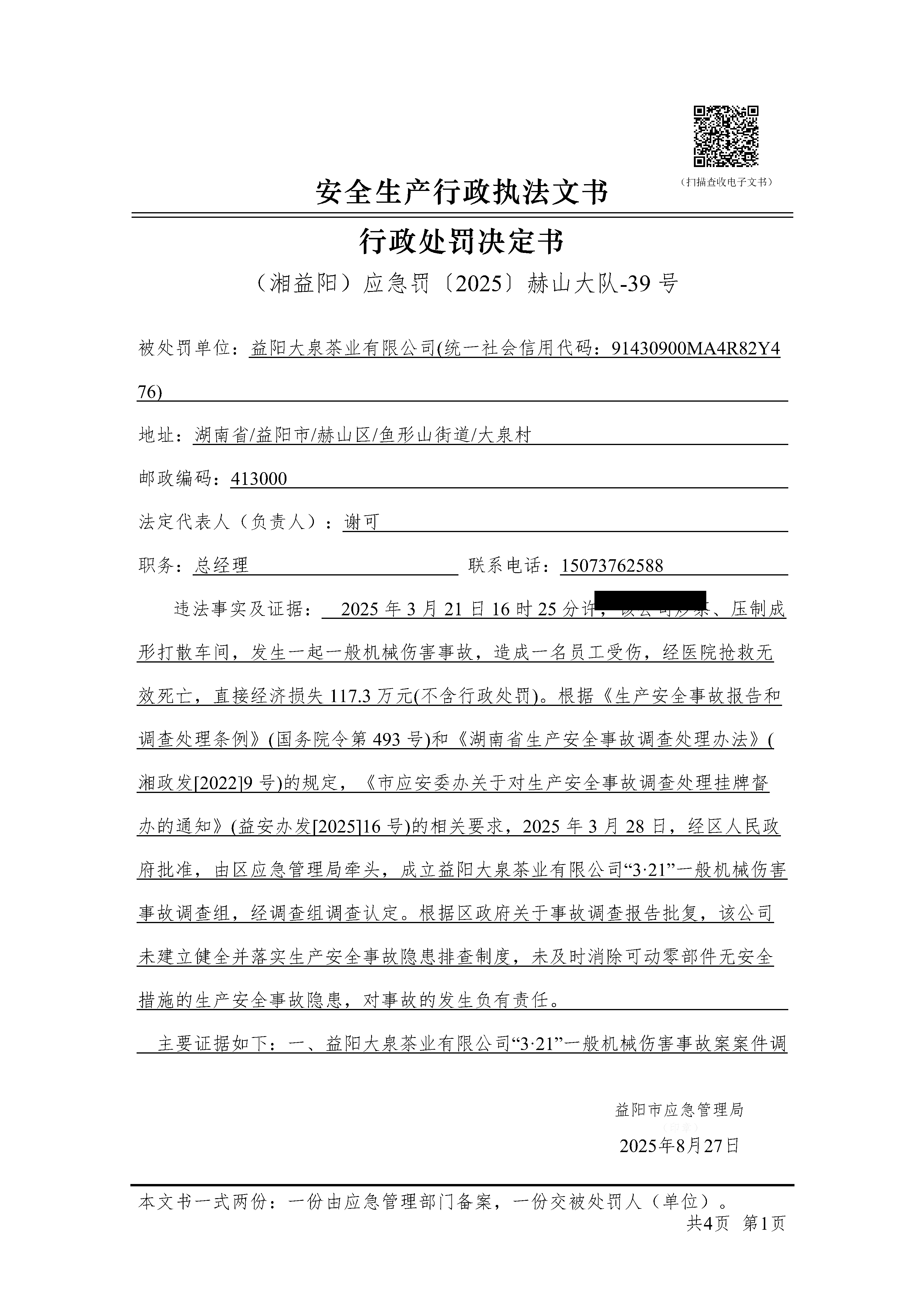 (湘益阳)应急罚〔2025〕赫山大队-39 号
