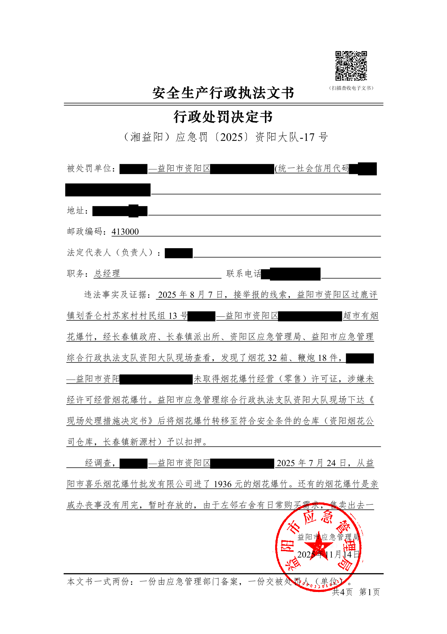 (湘益阳)应急罚〔2025〕资阳大队-17 号