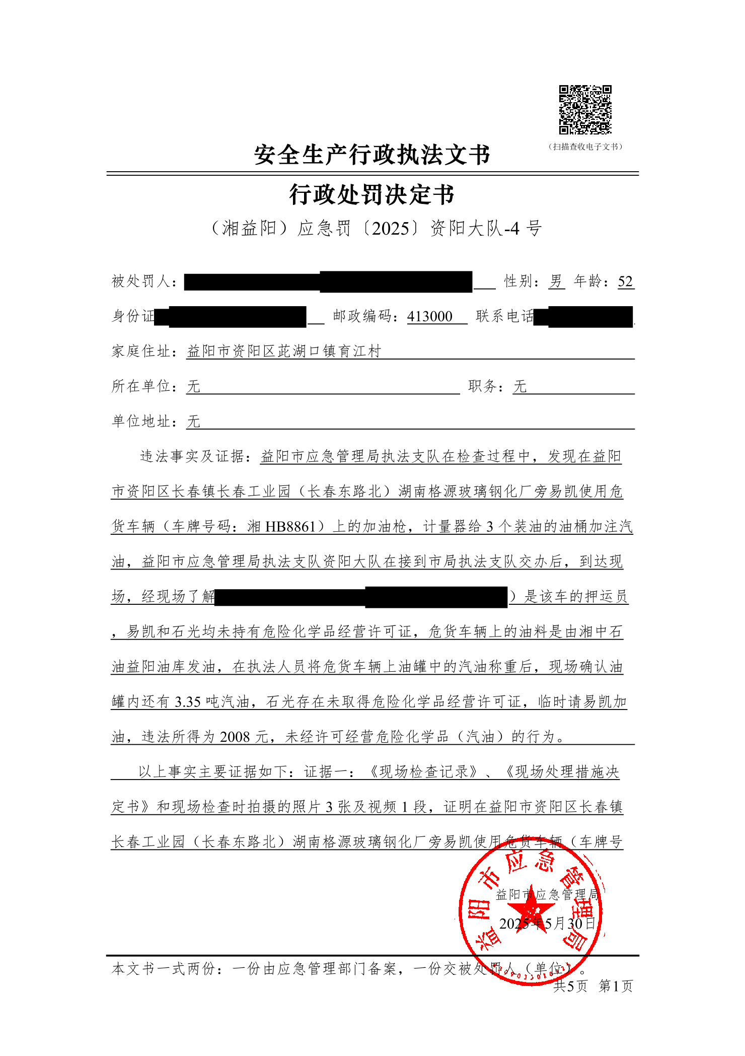 (湘益阳)应急罚〔2025〕资阳大队-4 号