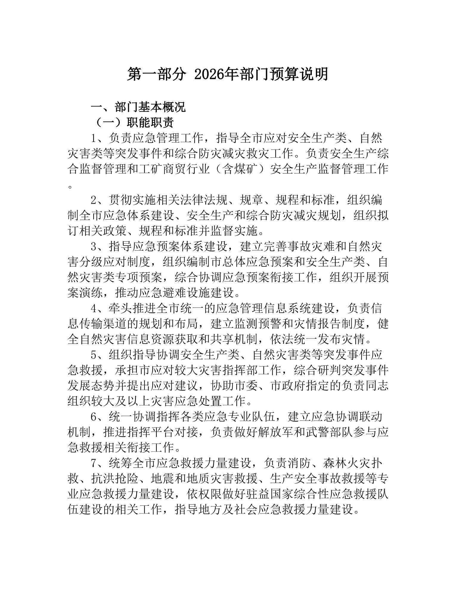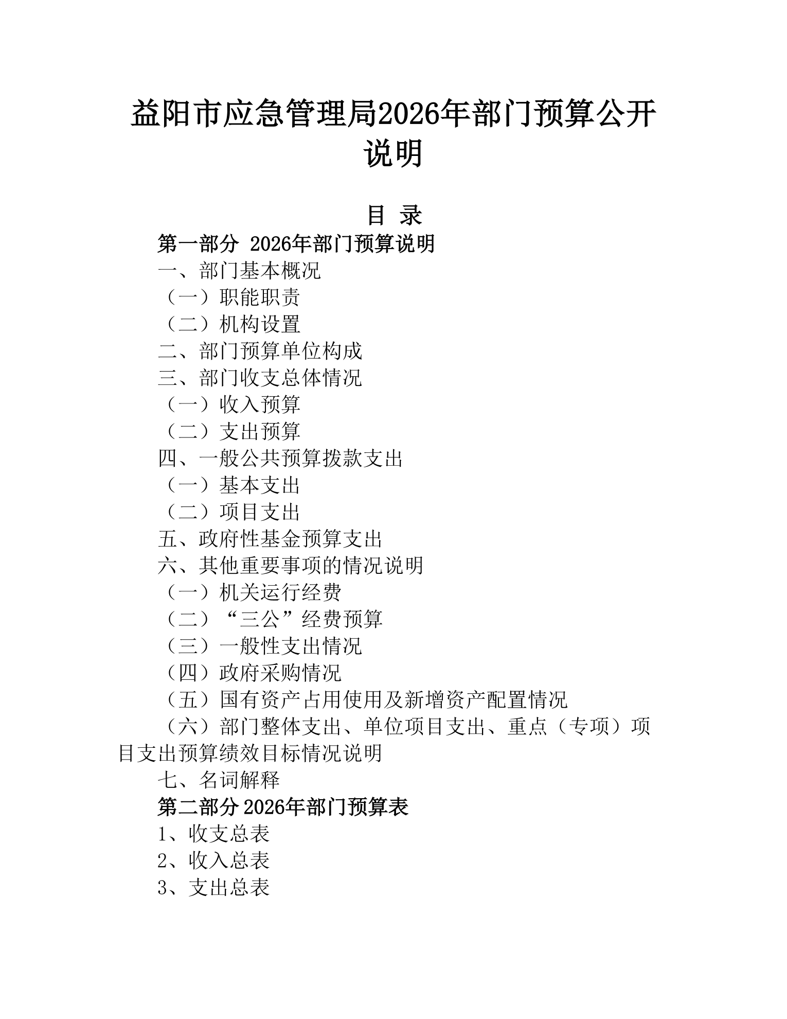 益阳市应急管理局2026年部门预算公开说明