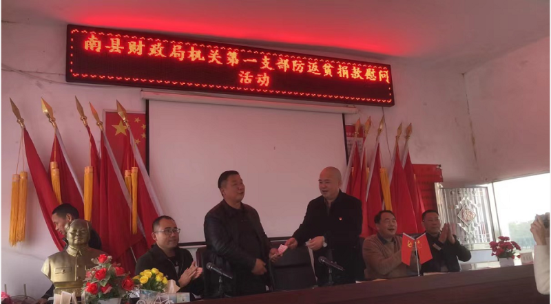 2021年11月16日下午,华阁镇华西村村部格外热闹,南县财政局机关第一支部联点局领导宋波同志代表支部向村委捐赠支部全体干职工团结协作赢得的趣味运动会奖金,以解决该村贫困户医保筹资缺口。这已是该支部今年到乡村振兴办点村开展的第4次帮扶活动,用支部书记陈建伟的话讲:我们与财政局机的兄弟姊妹们已是亲人……