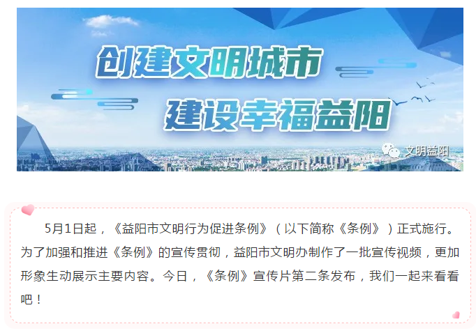 【转载】做文明益阳人!《益阳市文明行为促进条例》宣传视频(二)来了