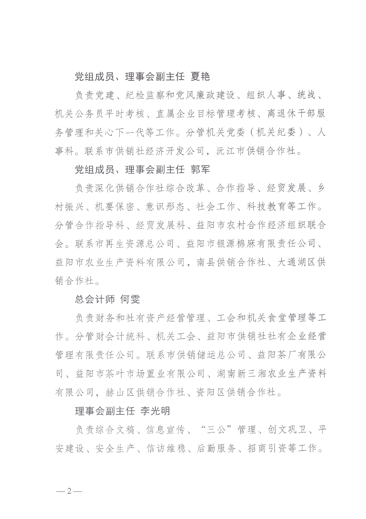 中共益阳市供销合作社党组关于调整领导班子工作分工的通知