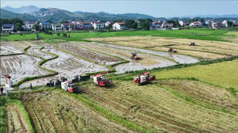 桃江县供销社通过“县社统筹、基层社联动”机制,组建了覆盖广泛的农机服务大联盟,汇聚525台(套)大中型收割机、播种机等农机具,科学引导农机合理调配。其中,浮邱山乡基层社联合种粮大户打造“全程机械化+综合农事”服务中心,提供“耕、种、管、收”一站式服务,“三夏”期间,累计完成水稻收割1.8万余亩,作业效率提升35%。此外,桃江县供销社坚持技术服务同步跟进,组建15支应急维修队,全方位开展业务技能提升培训活动,重点强化规范操作与减损技能,累计完成抢修故障农机150余台次,确保农机“健康”上阵。