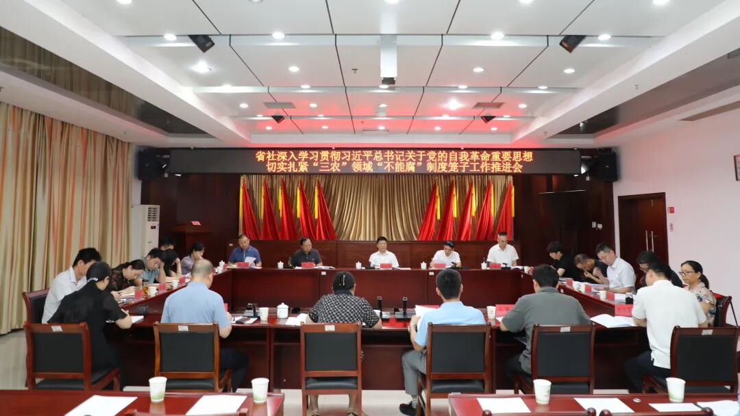 7月30日,省社召开制度建设工作推进会,旨在进一步深入学习贯彻习近平总书记关于党的自我革命重要思想,切实扎紧“三农”领域“不能腐”制度笼子。省纪委监委驻省农业农村厅纪检监察组组长彭江龙、省纪委监委第七监督检查室副主任彭晓强出席会议并讲话,省社党组成员、理事会副主任徐卫主持会议。