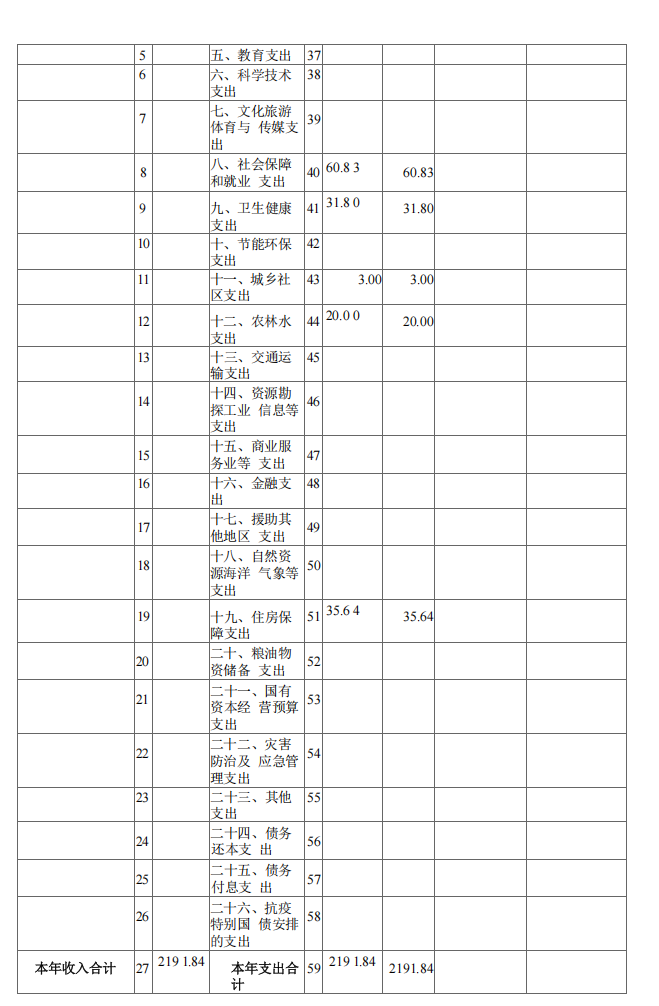 2024年度支出总计2,191.84万元。与上一年度相比,支出总计减少956.17万元,减少30.37%。主要原因是维修改造项目较上年减少。