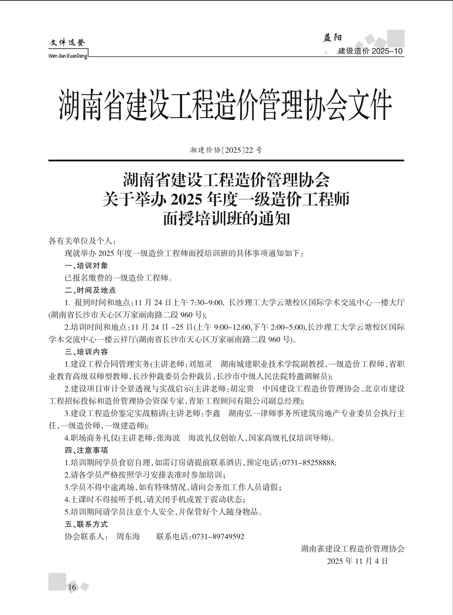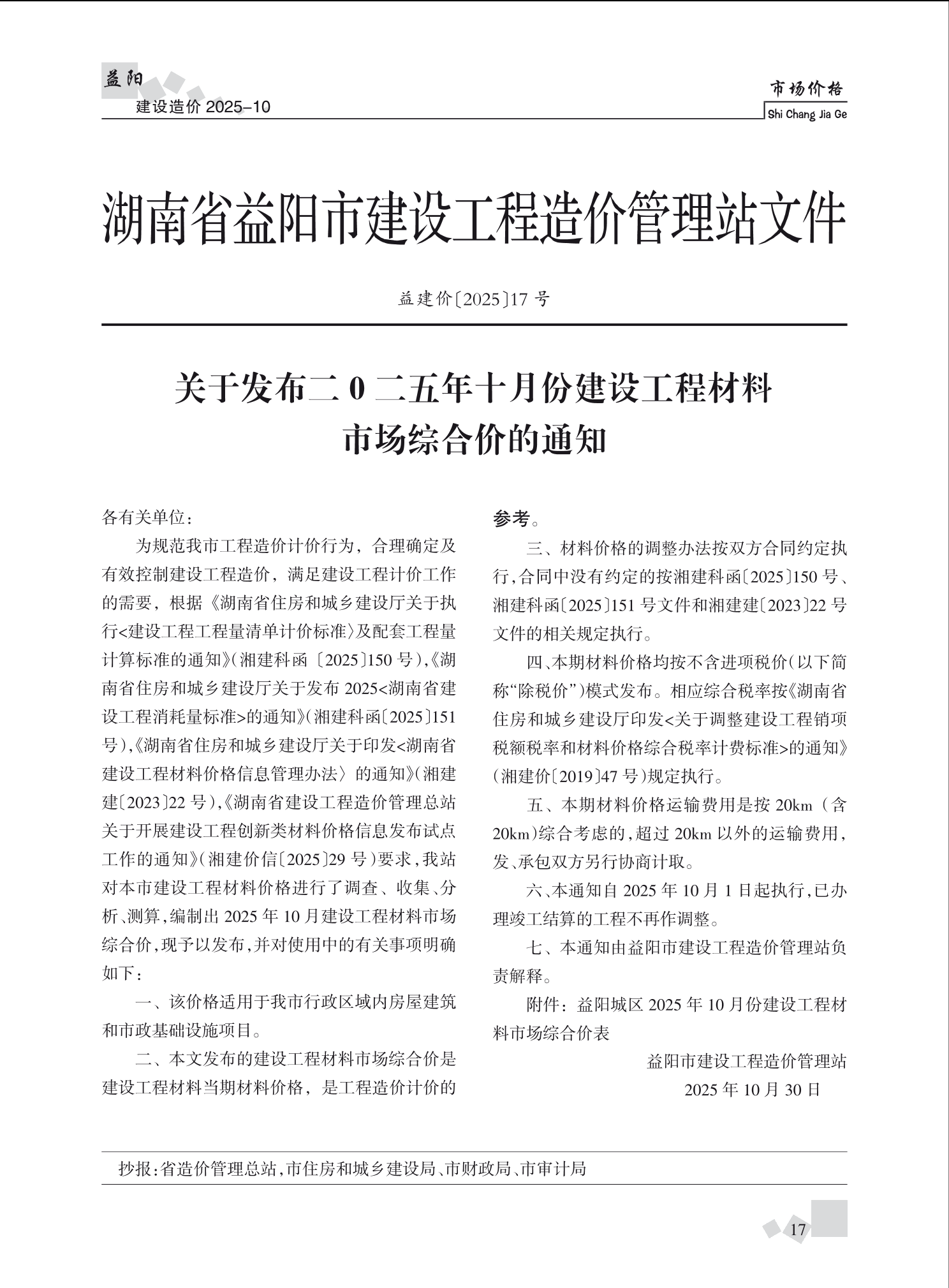 《益阳建设造价》2025年第10期