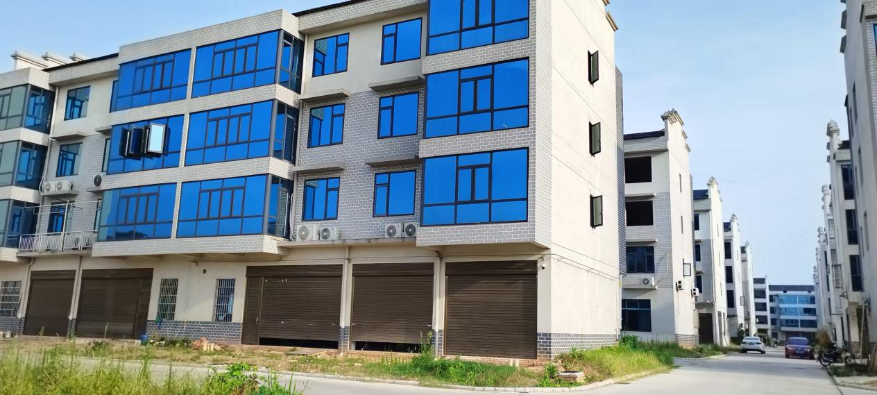 新中式风格与现代建筑风格结合:住宅统一建筑为四层,统一采用坡屋面,盖灰色筒板瓦,采用灰色仿砖真石漆墙面和白色真石漆墙面相间,展现了湖南地区的本土建筑特色。此外,建筑物参照街道安置区建设统一的层高、屋面、外墙及建筑面积要求进行施工,力求在建筑风格、绿化布局、交通网络等方面达到和谐统一效果,有效提升了小区精神面貌。