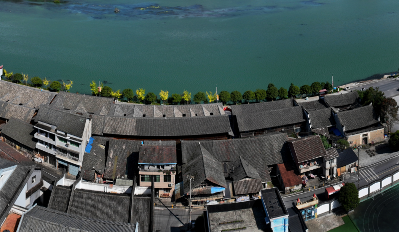 黄沙坪传统村落沿资江河岸发展,建筑排布与主要街巷随山体蜿蜒平行于河道,南北向道路连通各大小码头。村落西北硚口地域为溪流谷地,耕地面积大,且正好通向产茶区,为其发展提供了便利基础。黄沙坪优越的自然地理位置条件,使之成为安化古代重要的商业贸易码头,时至今日,昔日的繁华和商业功能虽已退却,但其基本格局于风貌仍然保存至今。