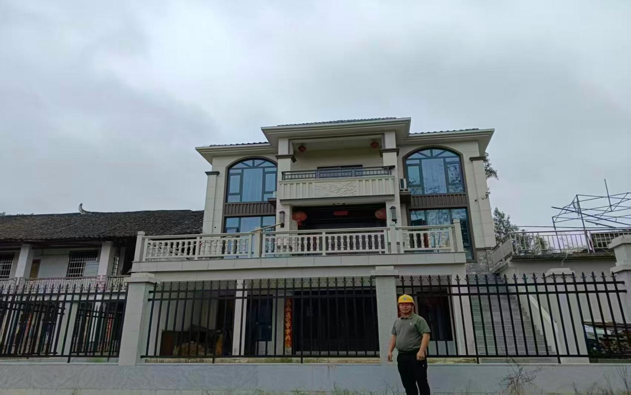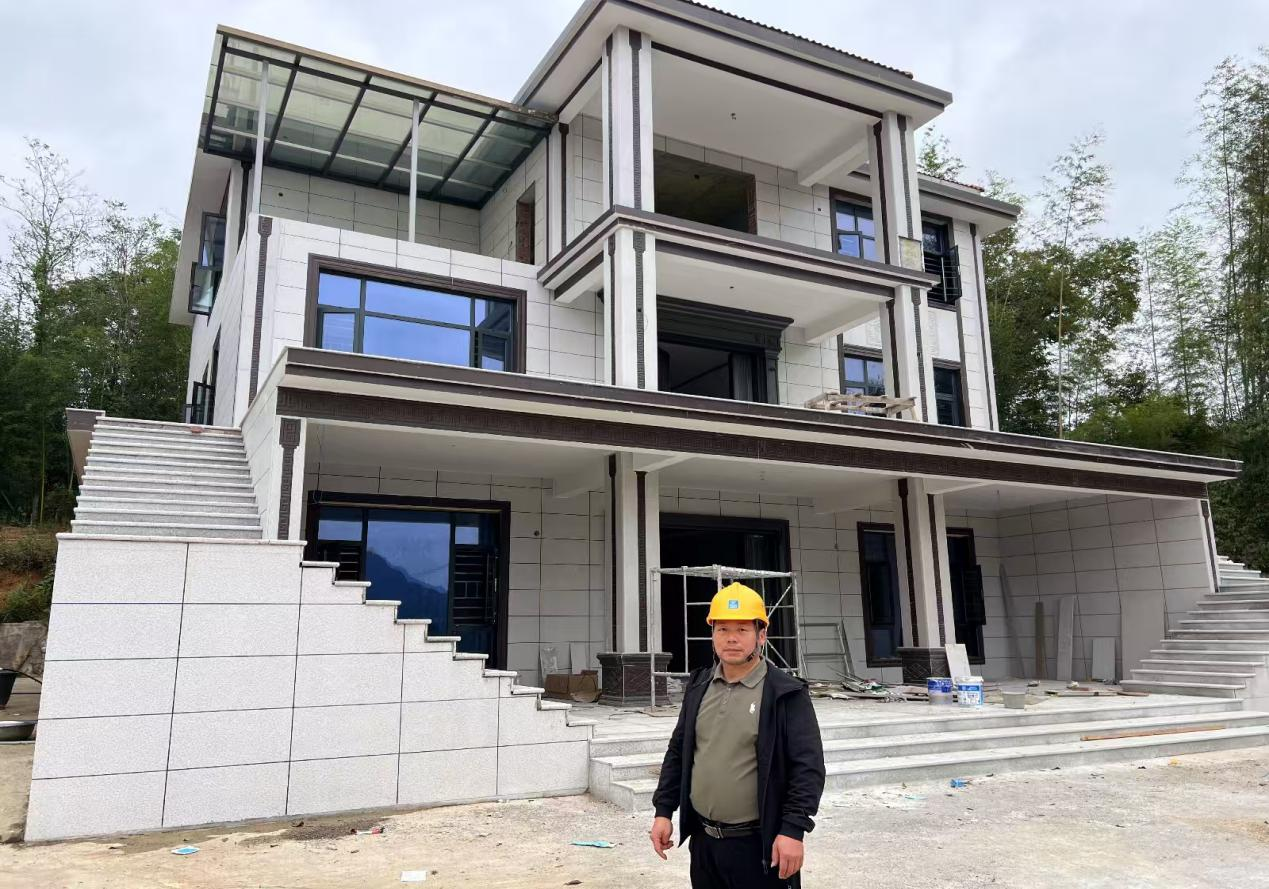 胡能干早年赴深圳发展,在高端别墅建设领域深耕近十年。期间,他参与了多个大型别墅项目的施工与管理,熟练掌握了现代建筑工艺与规范化流程,尤其擅长轻钢结构与重钢技术的应用。2020年,怀着对故乡的深厚情感,胡能干毅然返回安化,投身乡村建设,成为安化乡村建设的杰出匠人。他敏锐地察觉到乡村建筑需求的变化——从传统的居住功能转向对美观、舒适性与可持续性的多元追求。凭借在大城市积累的经验,他率先在本地引入轻钢建筑技术,并逐步拓展至砖混、重钢等多种结构类型,以别墅为主要方向,推动乡村建筑迈向现代化。