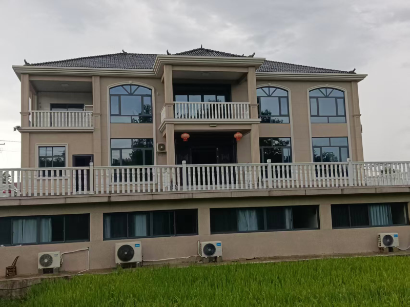 设计/施工特色:房屋整体呈现经典的徽派建筑风格,以白色墙体搭配黑色瓦片,色彩对比鲜明且素雅大方。两侧高耸的马头墙错落有致,不仅具有独特的装饰性,还能起到防火防风的作用。门窗设计兼具实用性与美观性。部分木质门窗带有中式雕花,增添了文化底蕴。阳台栏杆采用简约的中式镂空花纹设计,精致而不失现代感。设计上延续徽派建筑的经典元素,如马头墙、粉墙黛瓦,保留中式建筑的神韵,同时融入现代建筑的设计手法,做到传统与现代的完美融合,使居住者在现代生活中也能感受到浓厚的文化氛围,唤起人们对传统文化的记忆和认同感。注重居住的舒适性与实用性,打造一个舒适、便捷且美观的居住环境。