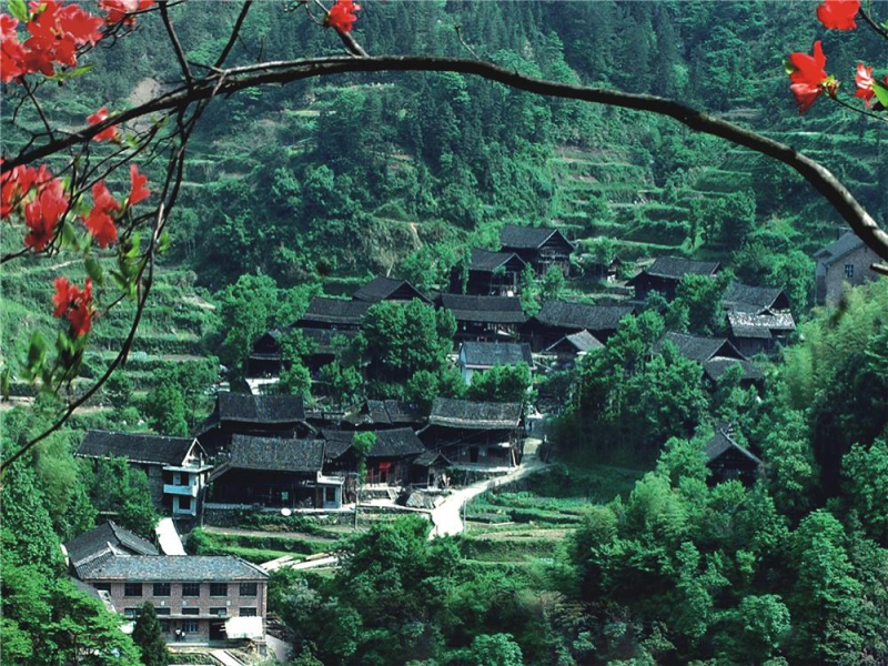 传统民居为典型的穿斗式木结构建筑,一般有两层,下层普遍住人,上层为敞开式,用于存放杂物、阴干粮食,还有很好的隔热散热作用,也有部分装有板壁的上层可以住人。小青瓦和杉树皮铺盖屋顶,青石板堆砌成石阶,古朴雅致,房屋布局多呈“L”形或“一”字形。