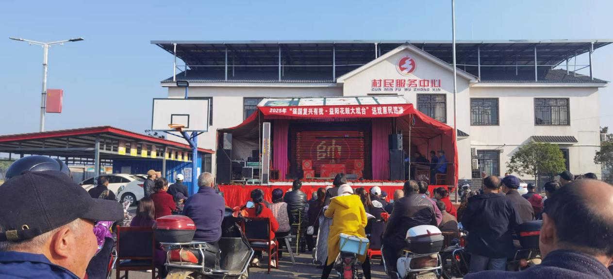 午后阳光温暖和煦,下午 1 点 30 分,心连心小区内同样人气爆棚。沅江市花鼓戏剧团的演员们精神饱满地献上经典剧目《王文虎卖柴》。熟悉的旋律、接地气的剧情、浓郁的乡土气息,深深吸引着小区居民与周边村民。老人们看得聚精会神,孩子们则在一旁好奇围观,不少观众还跟着唱腔轻轻哼唱,现场处处洋溢着欢乐祥和的氛围。演员们不顾演出辛劳,始终全心投入,用精彩表演为村民送上一场高质量的文化盛宴。